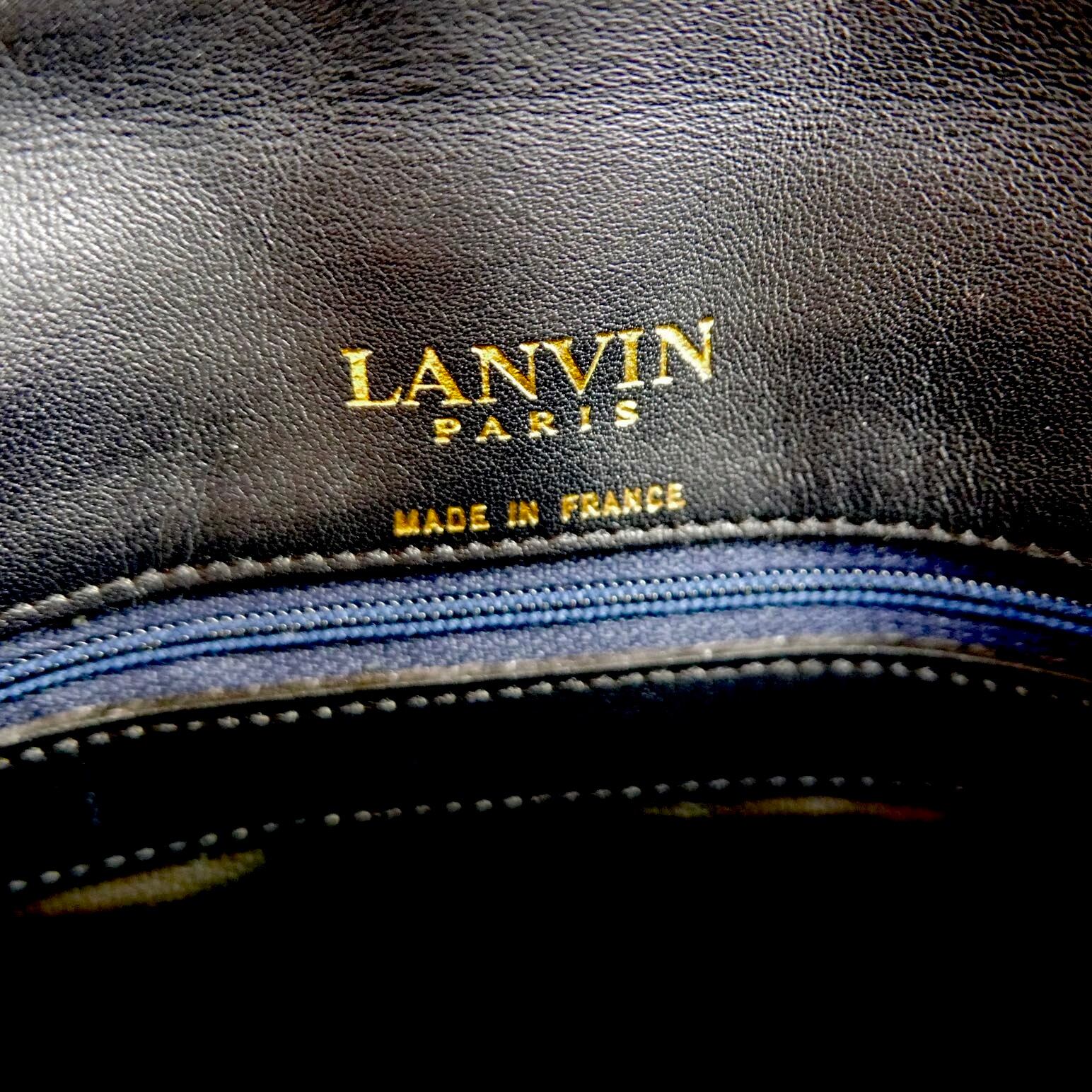 LANVIN "Blue×White Lined" Black Leather Shoulder Bag