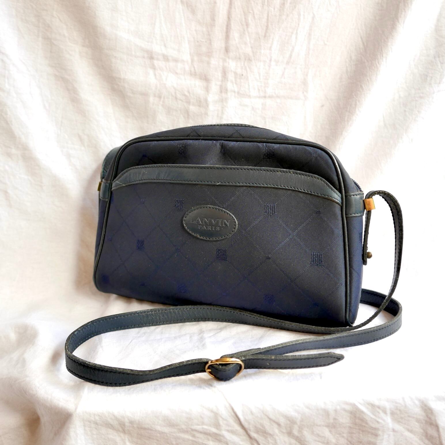 オールネイビーでシンプルながらも、キャンバス×レザーのバランスが絶妙なLANVINのショルダーbag!