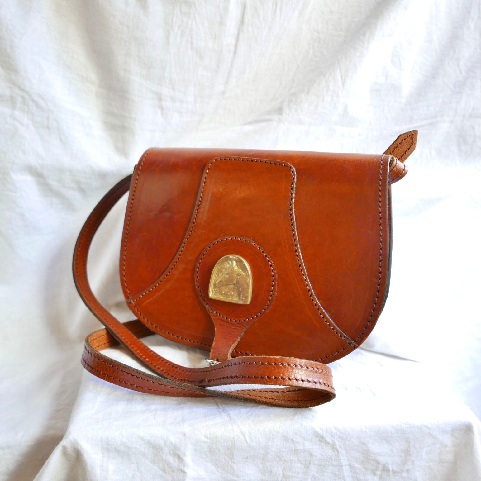 French "Horse-Badge" Brown Leather Shoulder Bag