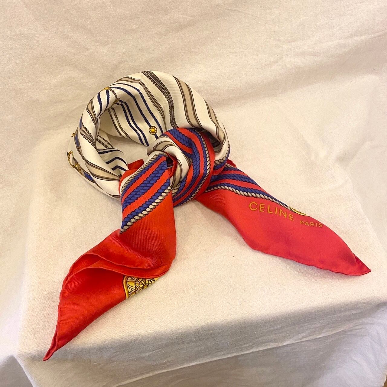 赤と青の合わせがさわやかなCELINEスカーフ!