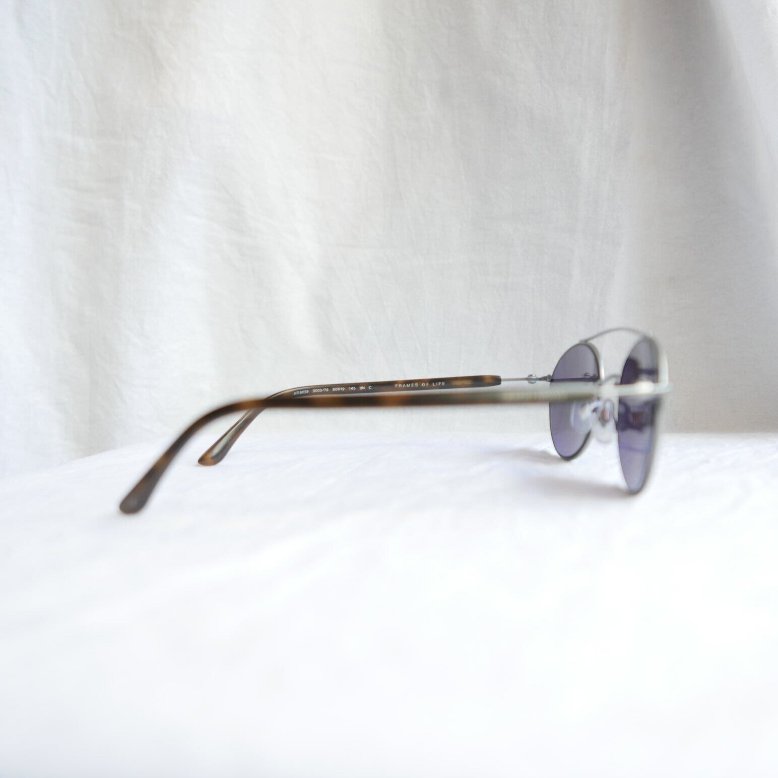極細のシルバーメタルフレームにほんのりパープルがかったグラスが知的な印象のARMANIサングラス!
