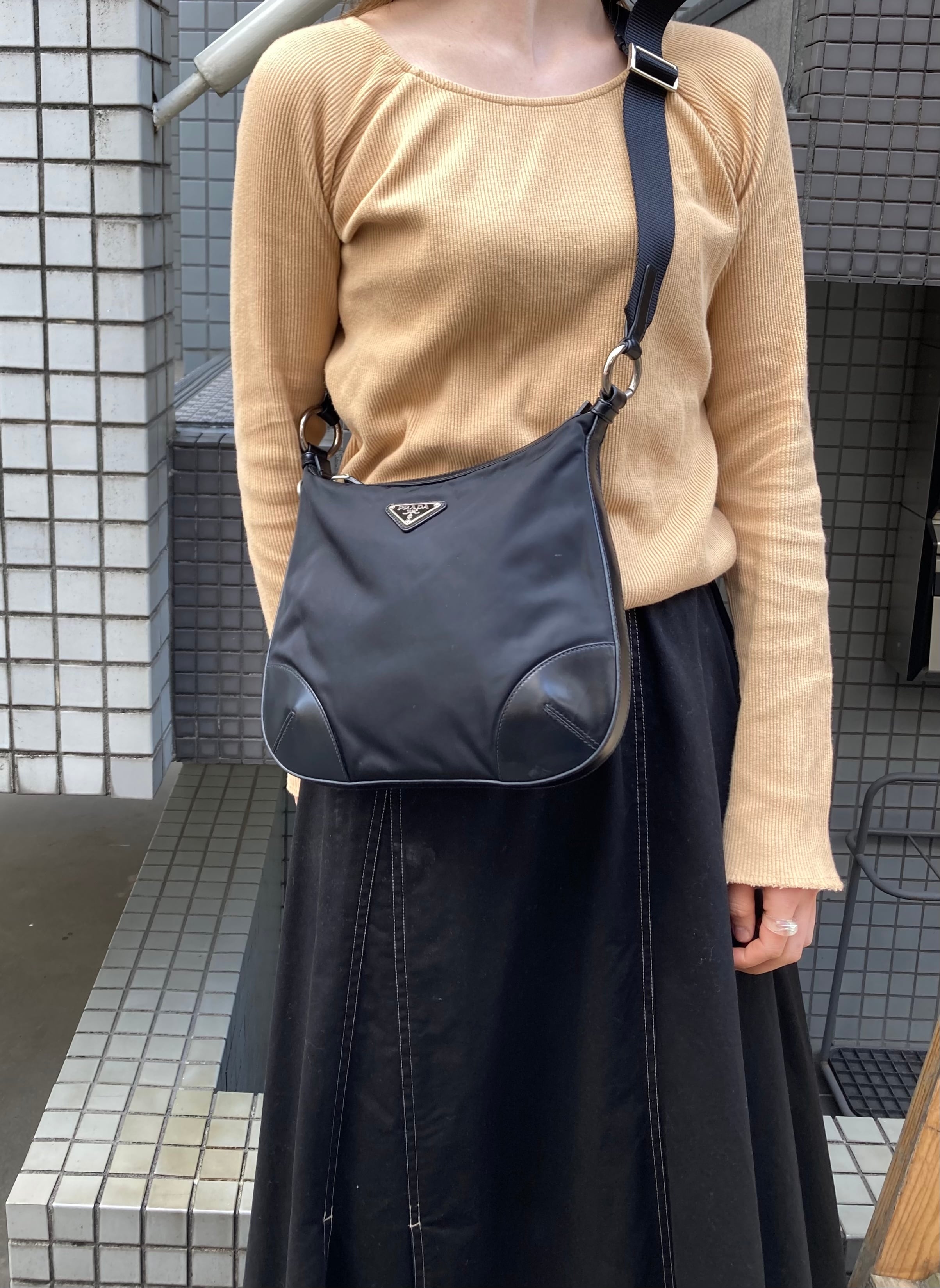 PRADA "Black Nylon × Leather" Shoulder Bag