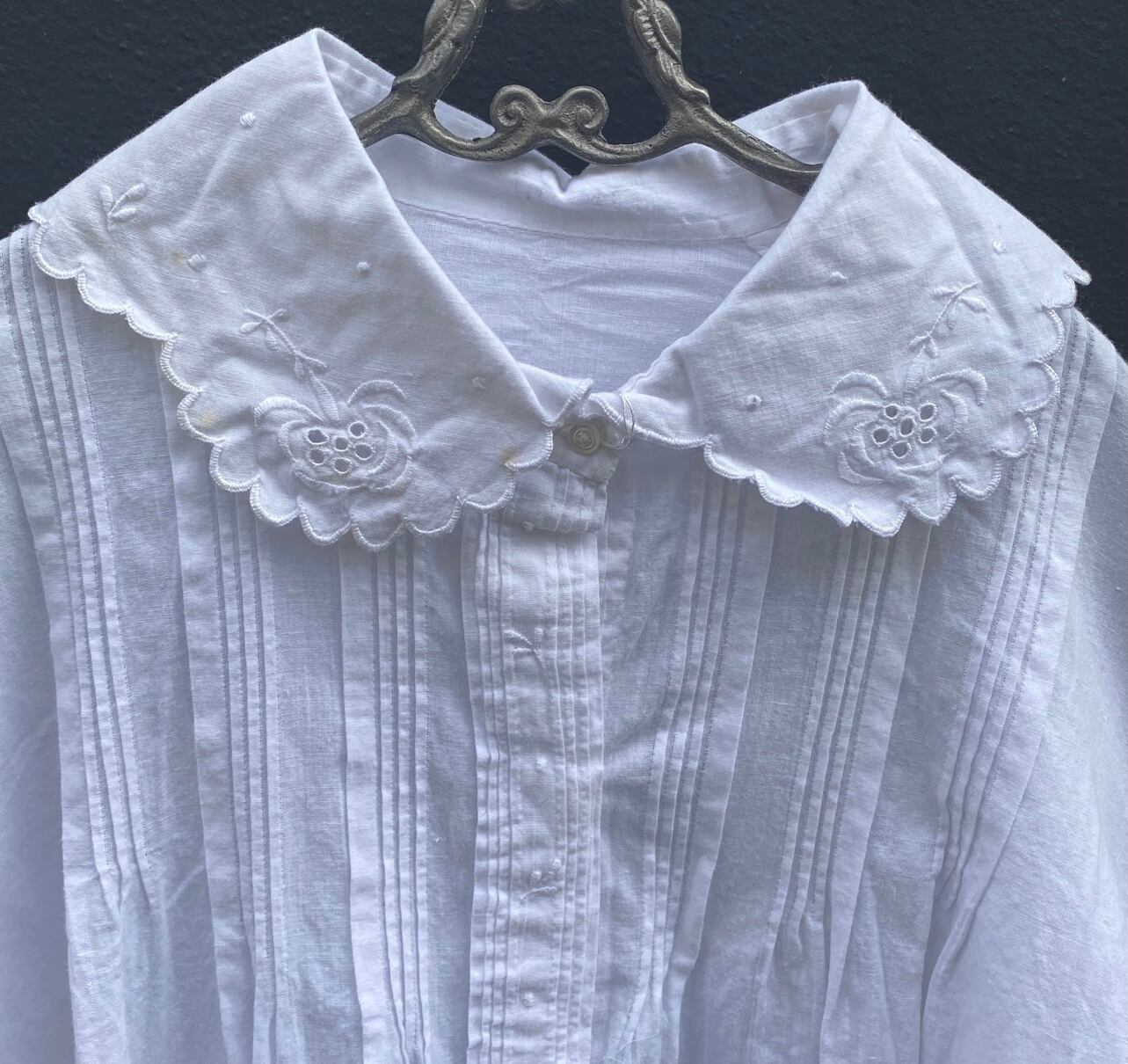 French Antique 1920~1940's "Frilled-Collar" White Blouse #02