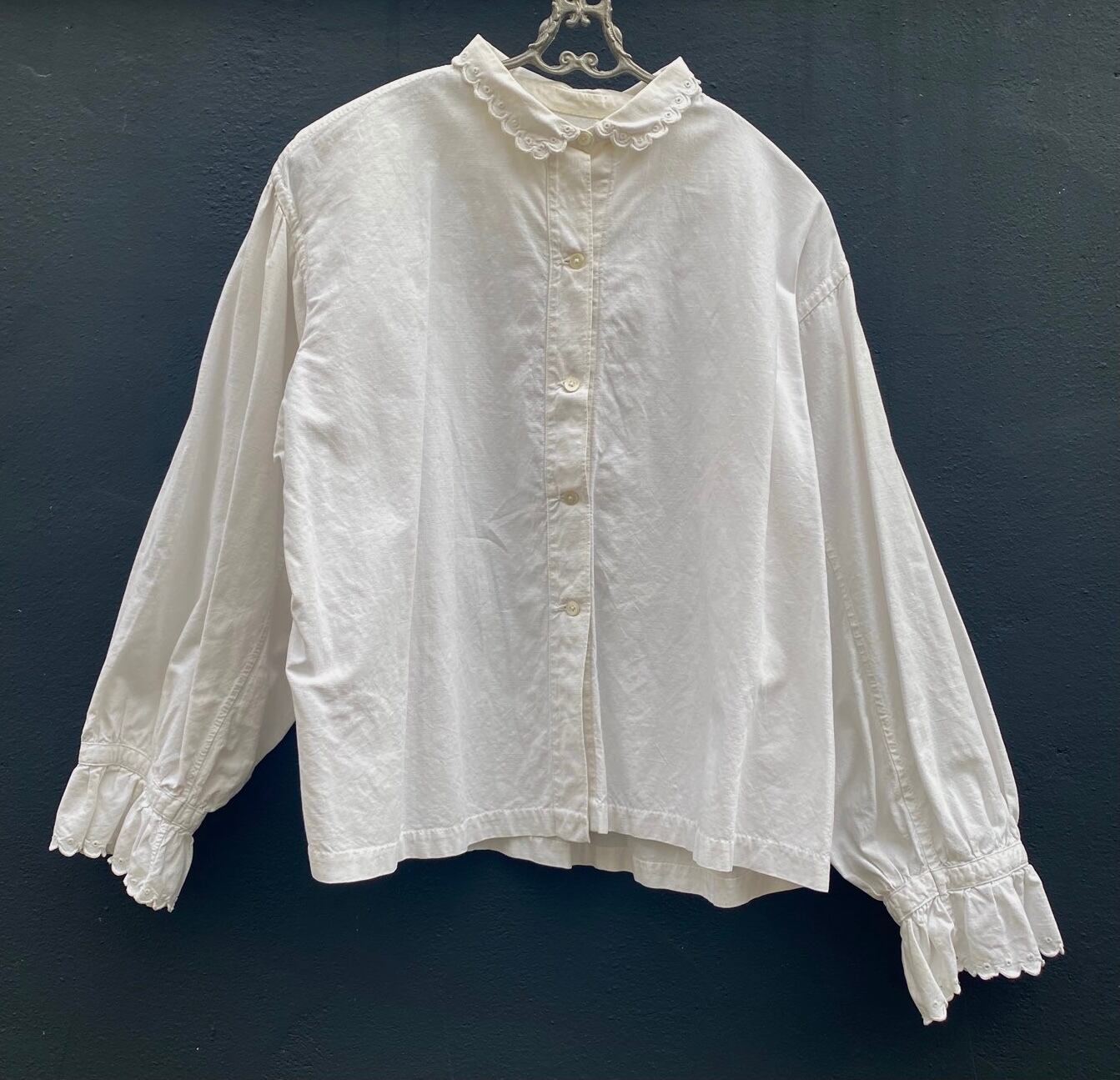 French Antique 1920~1940's "Frilled-Collar" White Blouse #03