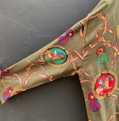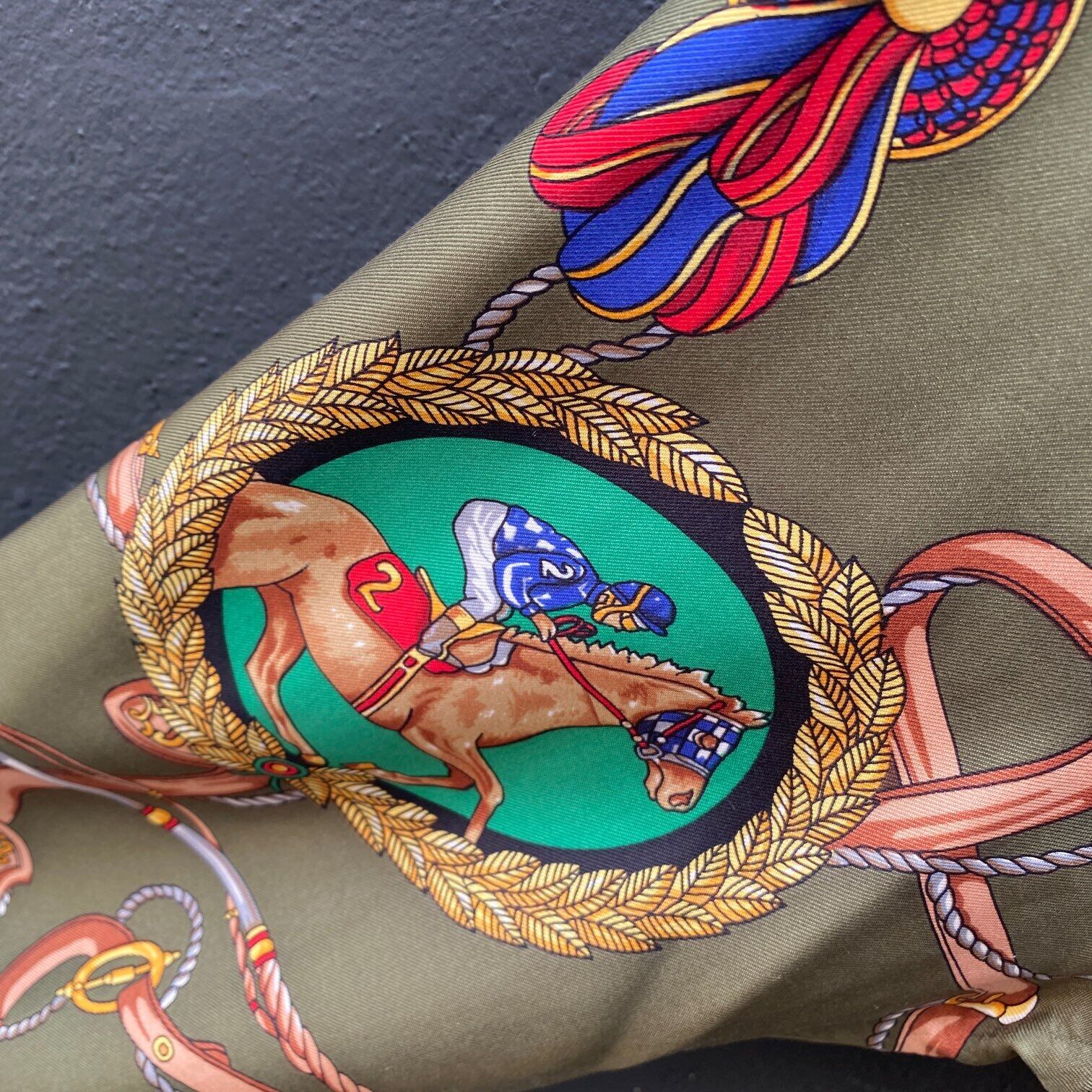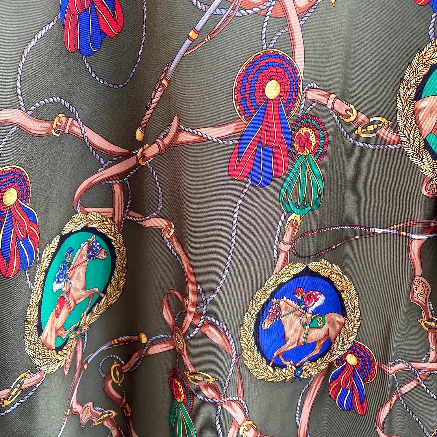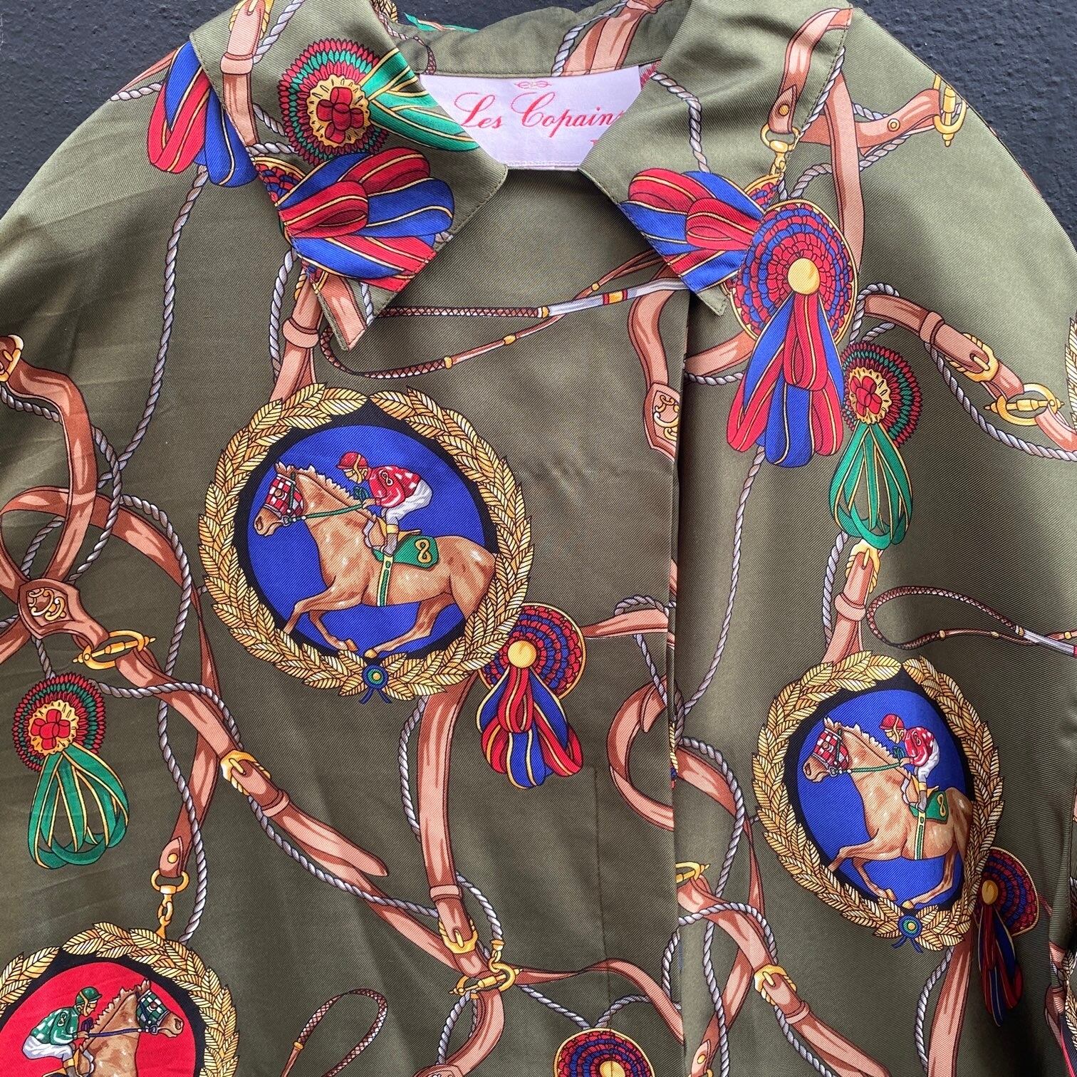 カーキのボディに飛び交うジョッキーがオリジナリティあふれるLes Copains , French Silkブラウス!