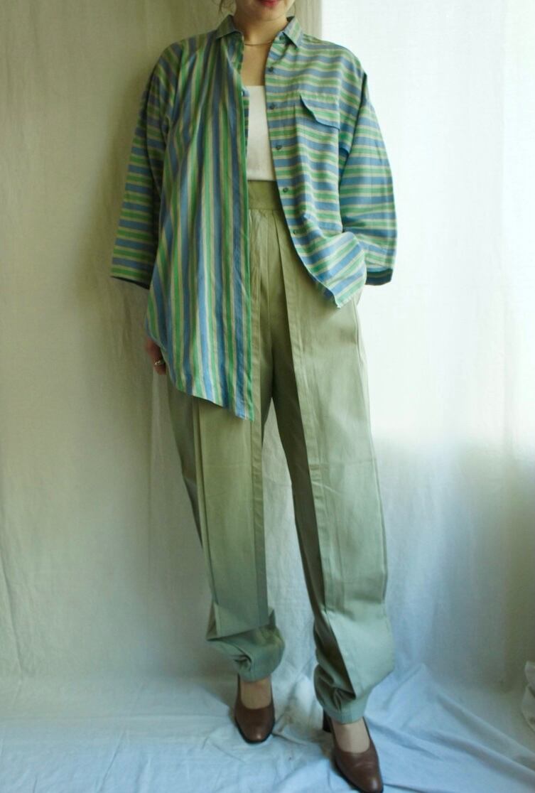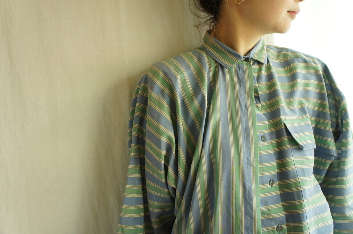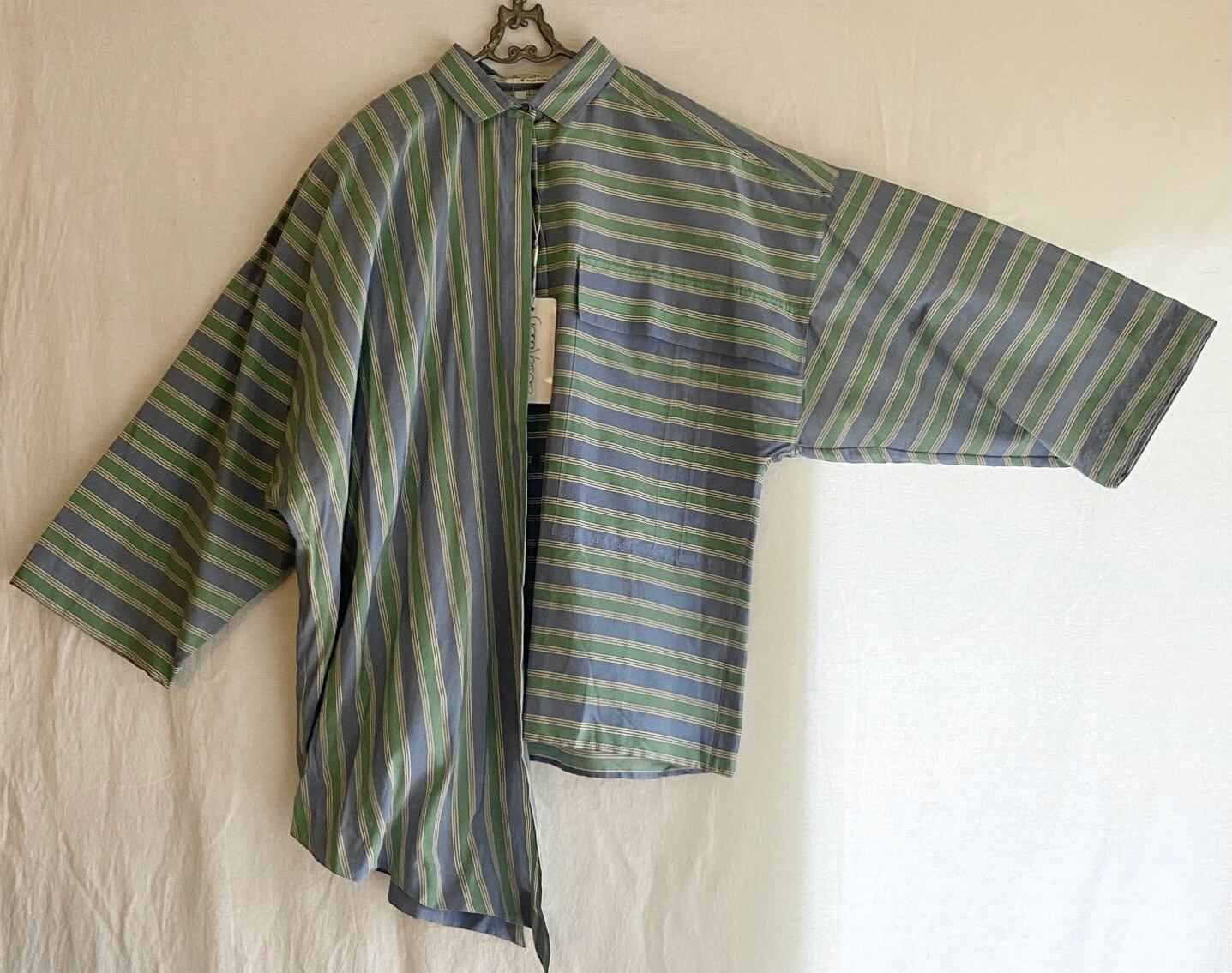 VERSACE 1980's "Blue×Green" Striped Asymmetry Shape Blouse -Dead Stock!-