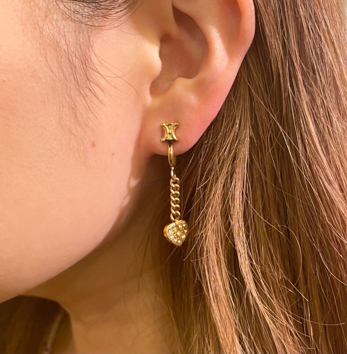 小さなマカダムロゴに揺れるハートのモチーフがキュンとくるCELINEのイヤリング!