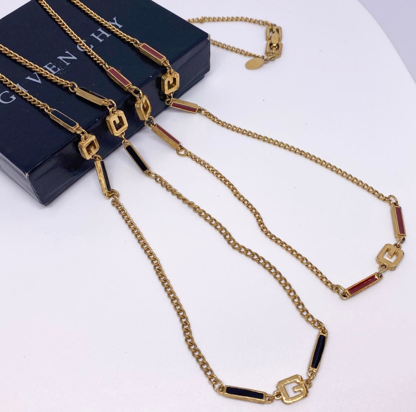 GIVENCHY "Black-Motif×Gold-Color-G" Long Chain Necklace