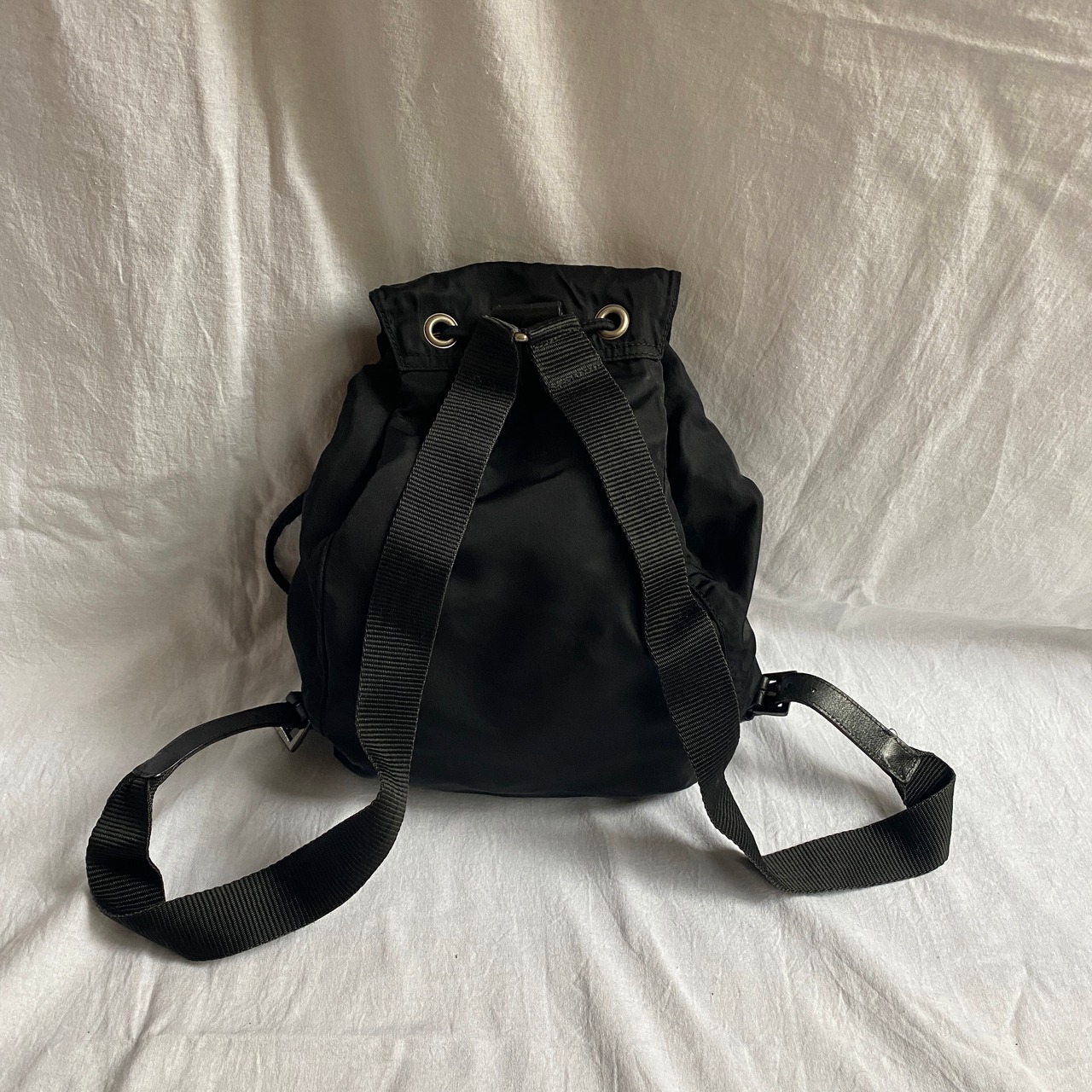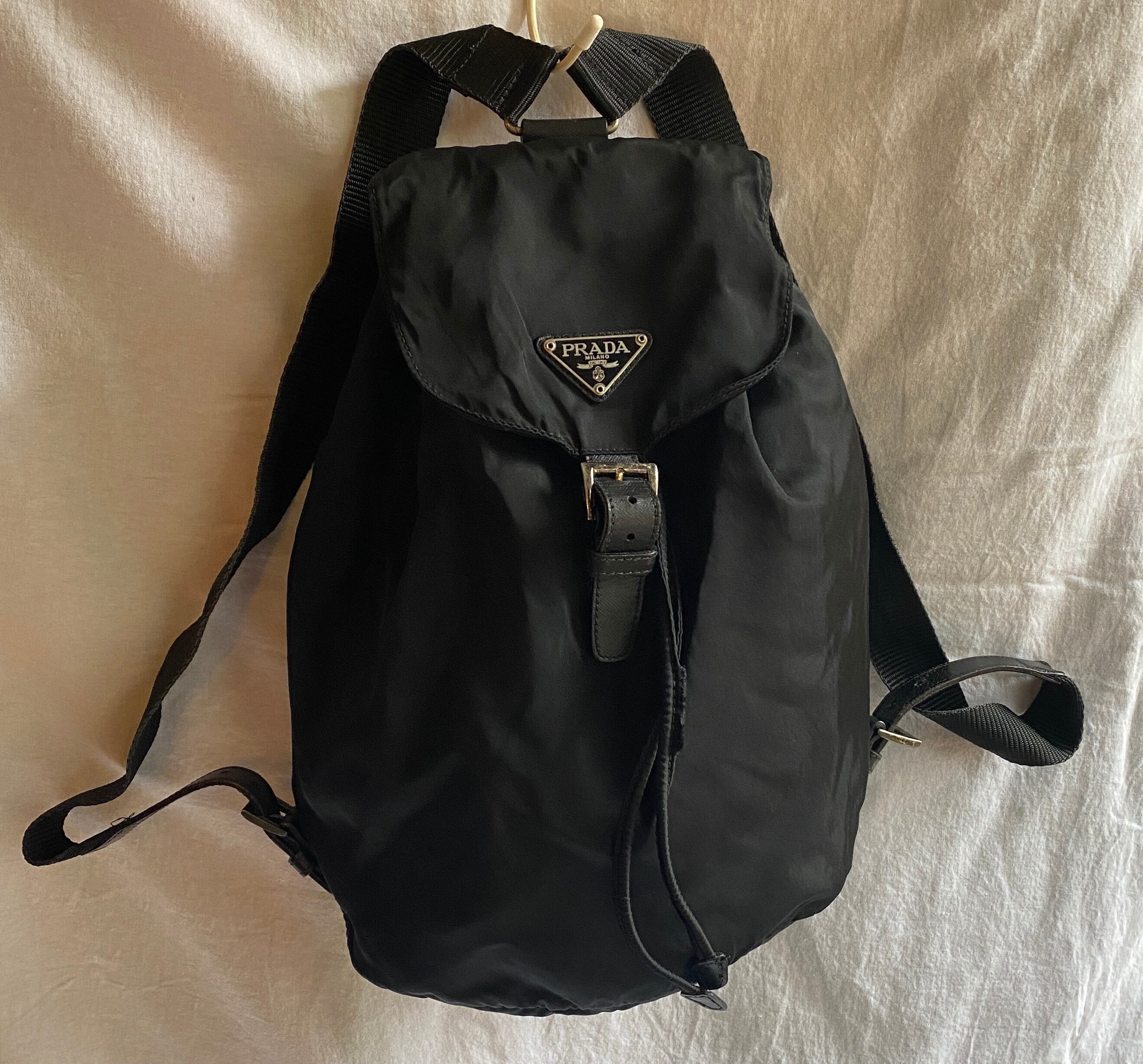 縦長のシルエットがアウトドア感のあるPRADAブラックナイロンリュック!