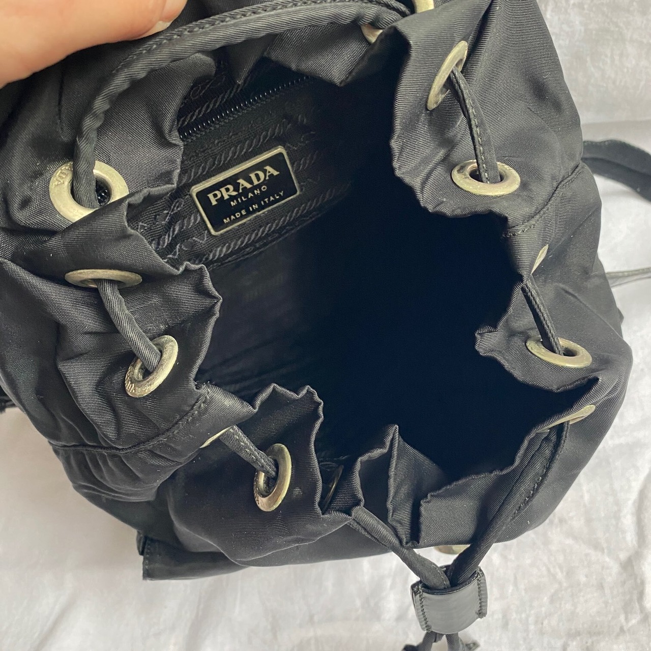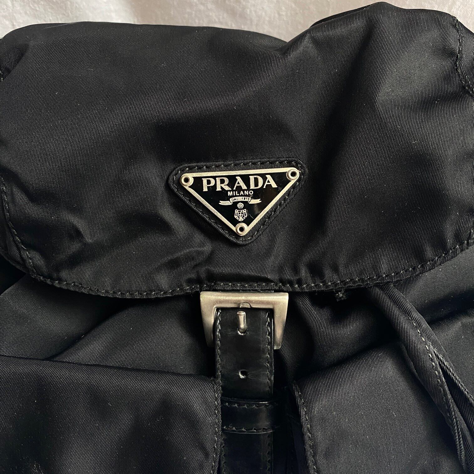 フロントのポケットデザインがカジュアルなPRADAブラックナイロンリュック!
