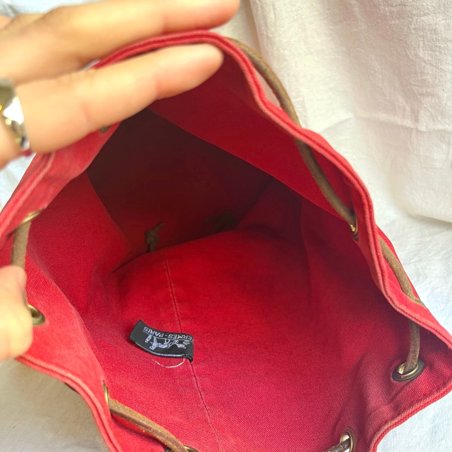 コットン地に同色のHロゴ刺繍がポイントなHERMES巾着バッグ!