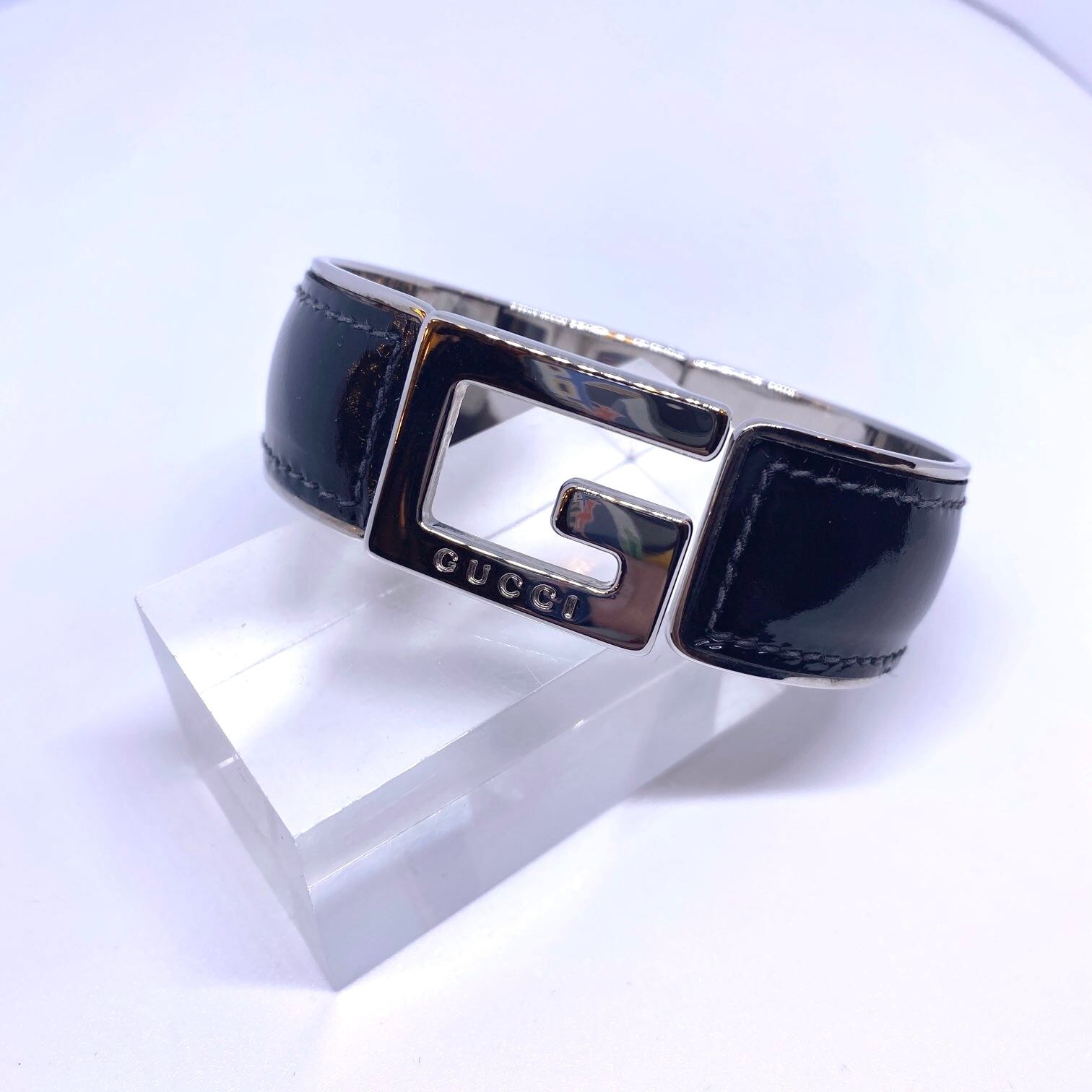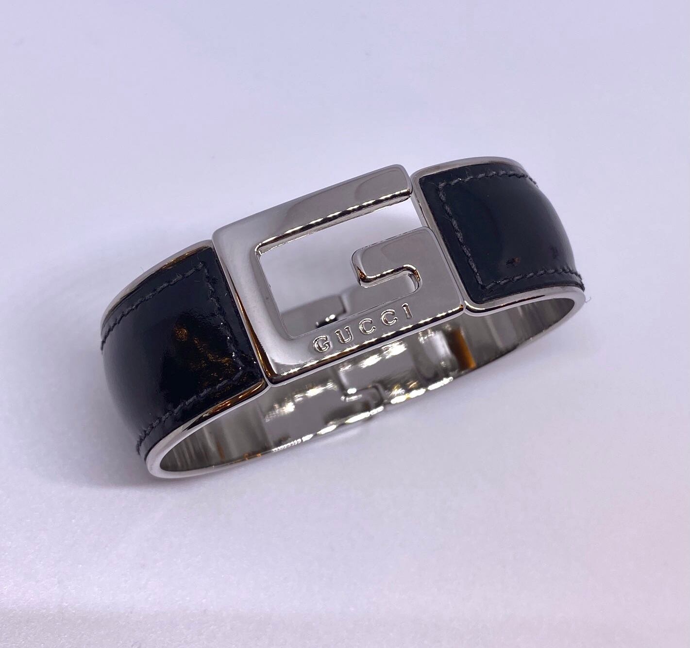 ブラックのエナメル×シルバーカラーのメタルコンビがクールなGUCCIバングル!