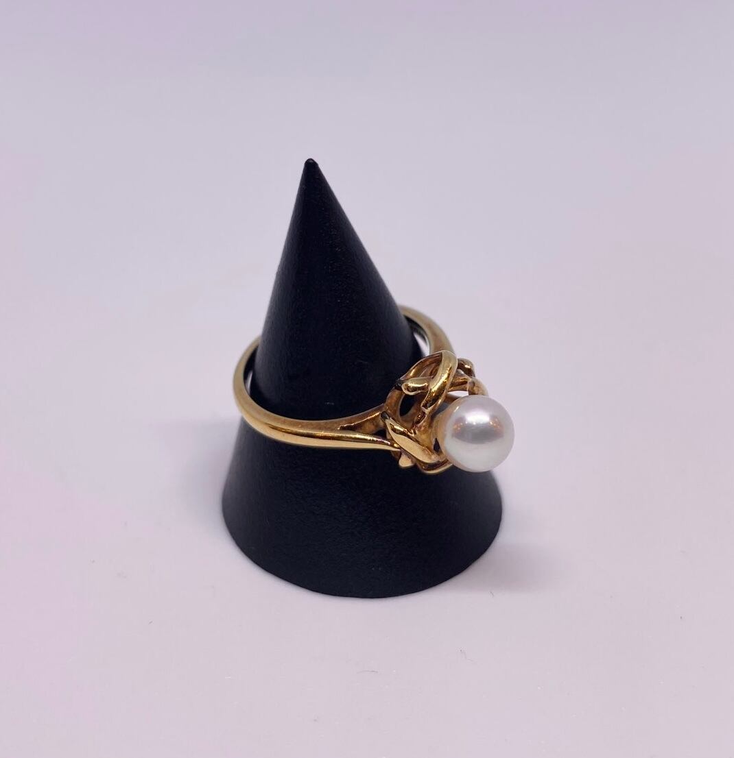 編み込んだかのような題材にパールが美しく輝くTIFFANYのリング!