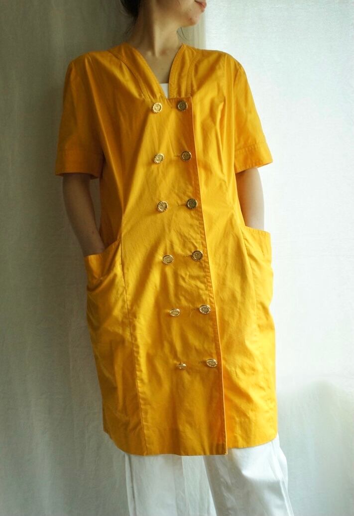 ビビットイエローカラーにゴールドの馬車ボタンが輝くCELINE 1980~1990's Vintage Dress!