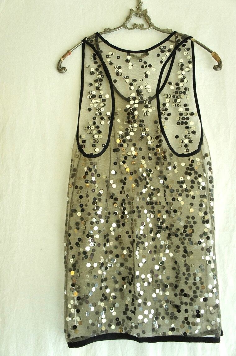シアーなブラック地に輝くシルバービーズが幻想的なマックイーンのトップス!