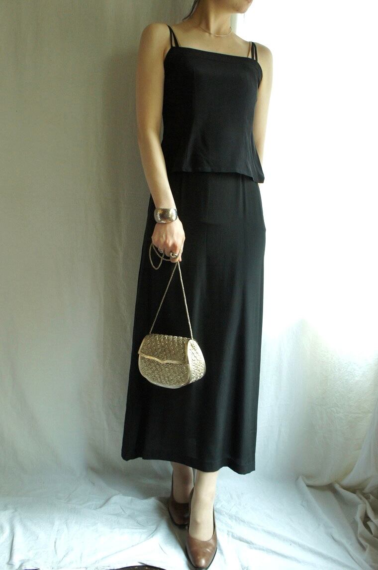 DIOR 1980's Black Silk Dress "2-Pieces-Set"