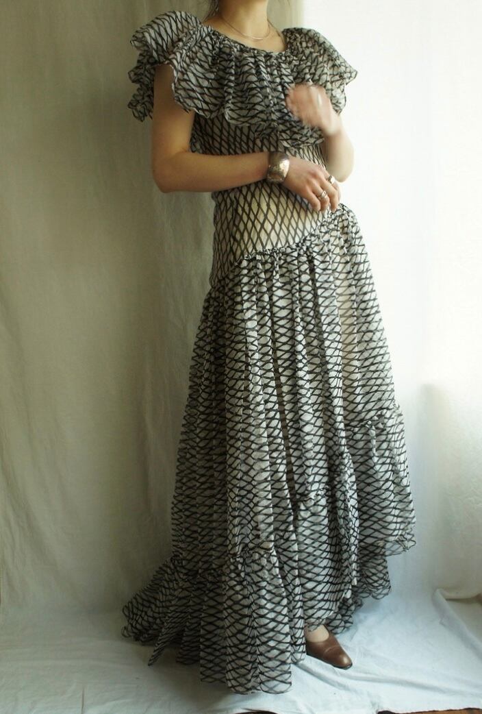 シアーなシフォン素材がエアリーなSAINT LAUREN "rivegauche"のロングドレス, 1970’s collection レア!