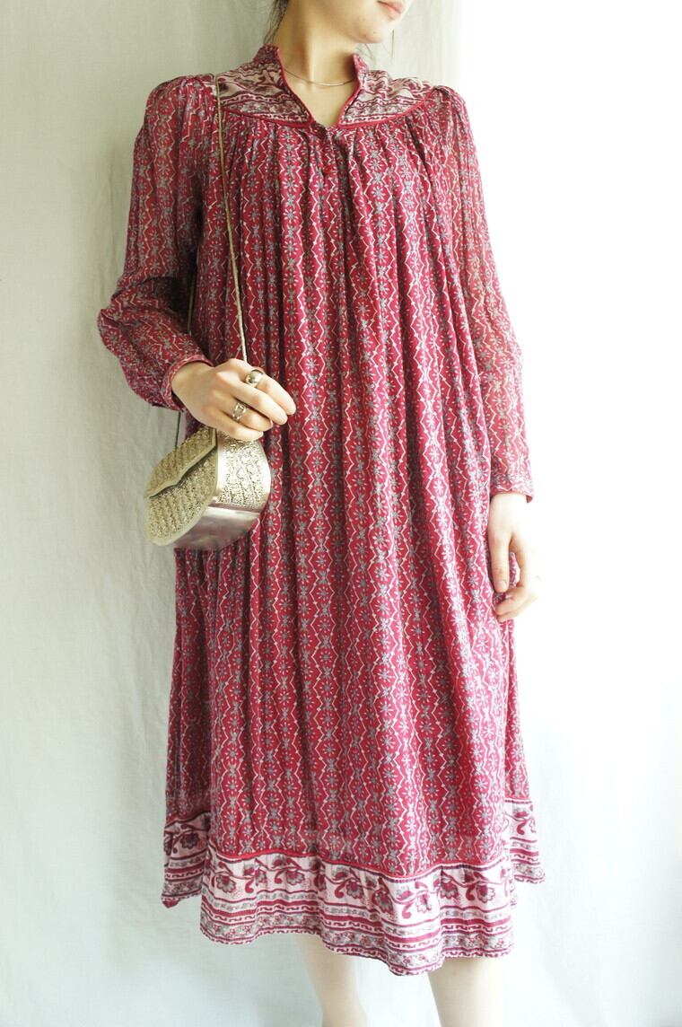 赤とピンクのコンビがかわいらしいカラーリングのFrench 1970's Vintageインド綿ワンピ!