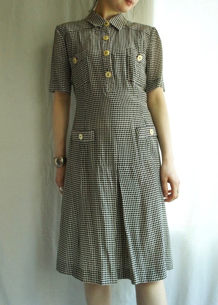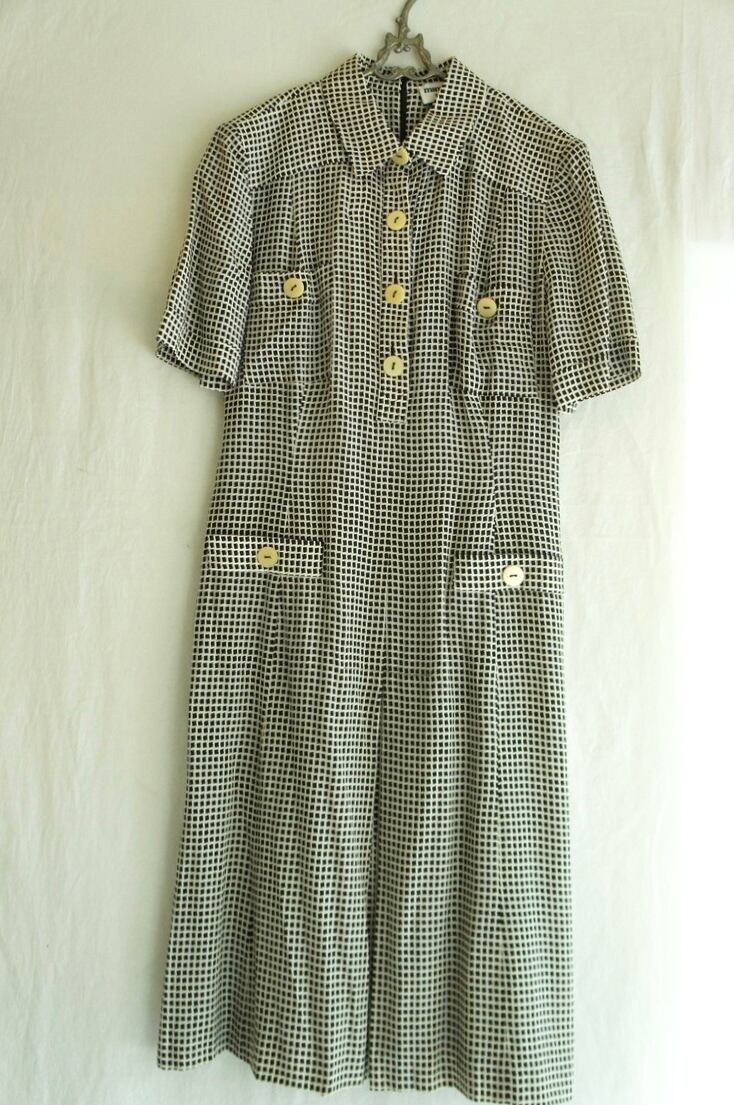 白地に黒のブロックデザインがシックなItaly Vintageドレス!