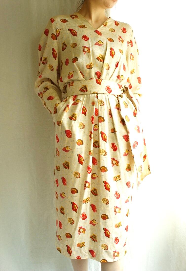 HERMES 1980's "Shell Design" Printed Silk Dress