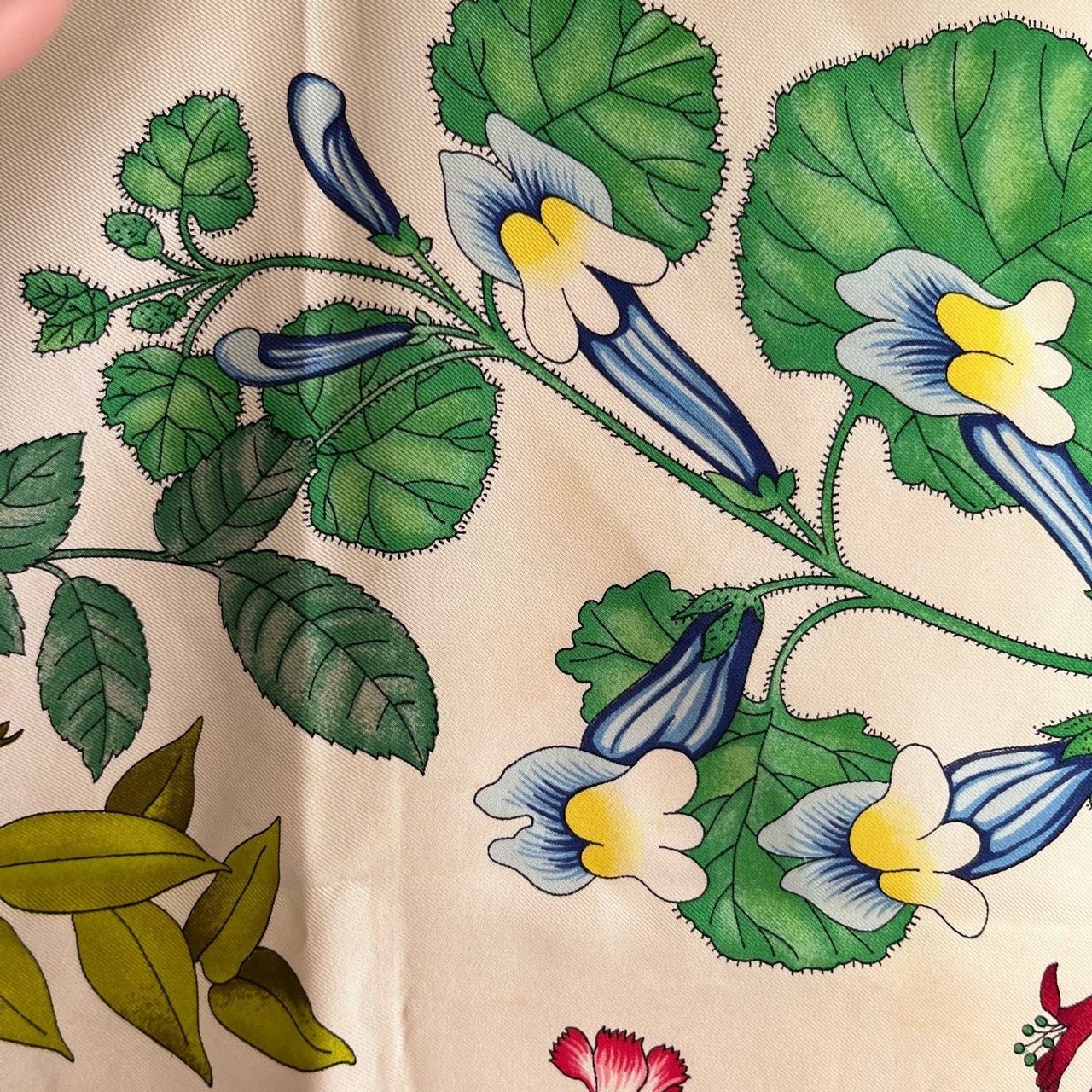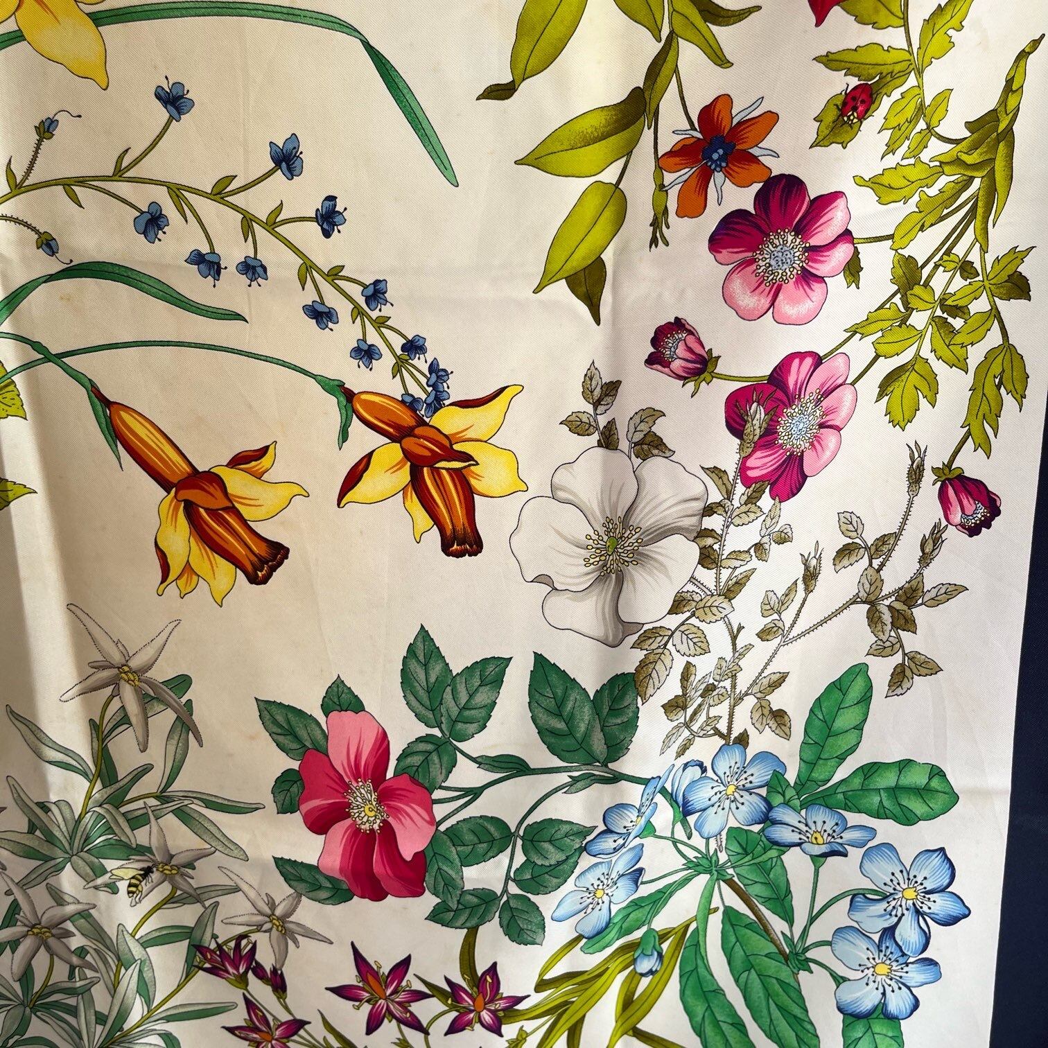 色とりどりの繊細なフラワープリントがGUCCIらしいスカーフ