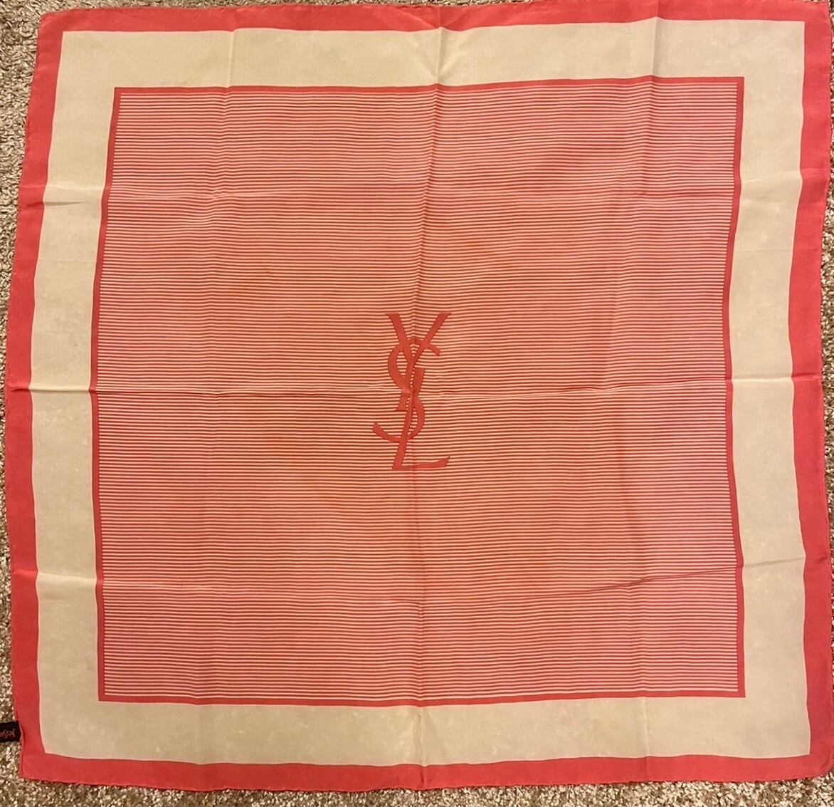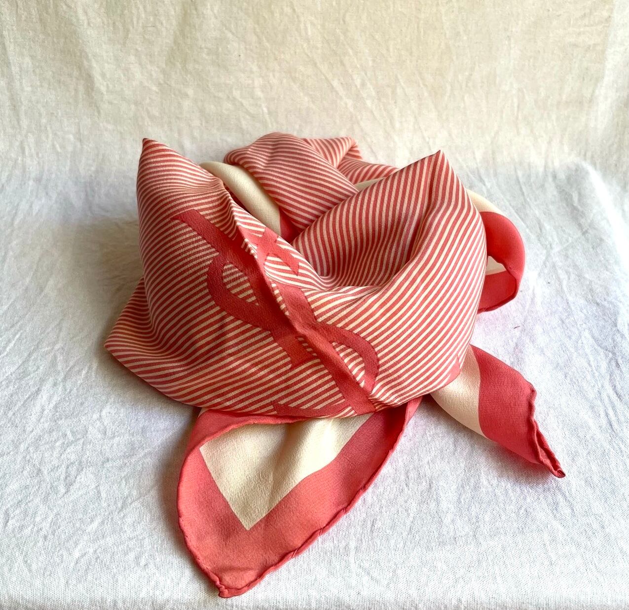 サーモンピンク×ベージュの潔いYSLスカーフ
