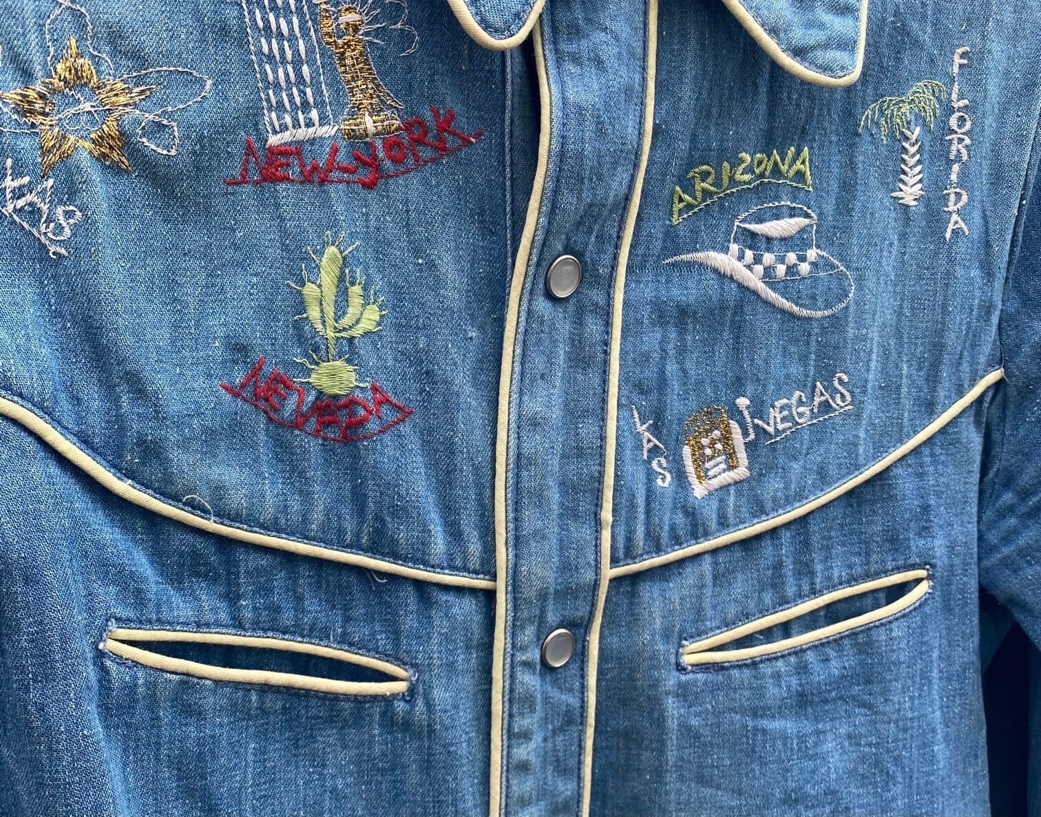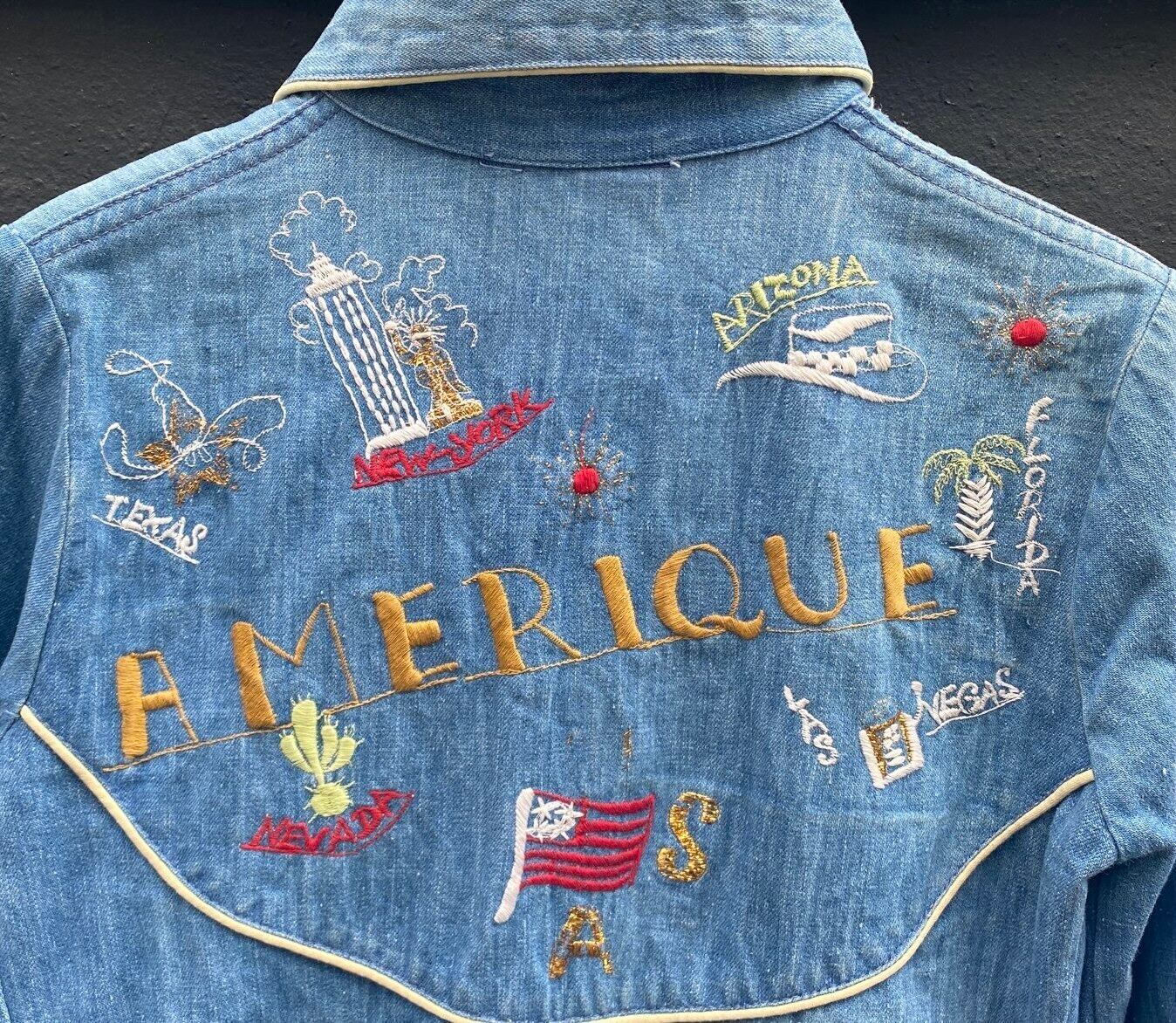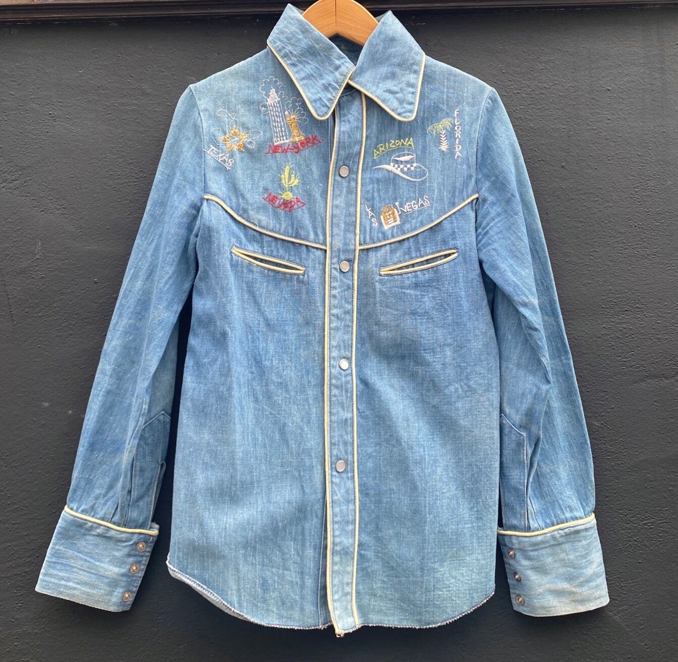 アメリカ各地のハンド刺繍がcuteなU.S.Vintageデニム ウエスタンシャツ!