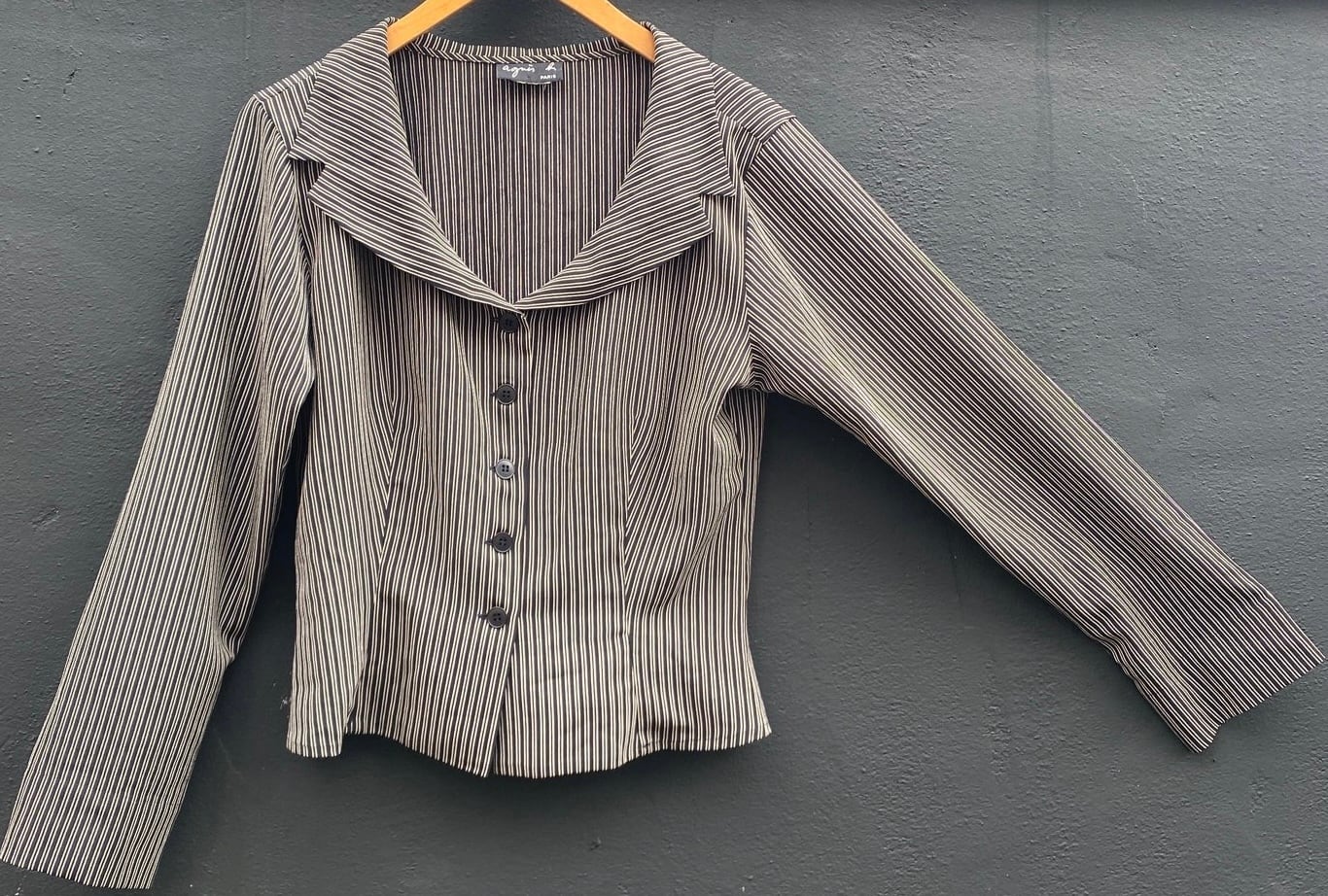 agnes b. "Striped" Short-Length "Wide-Collar" Blouse