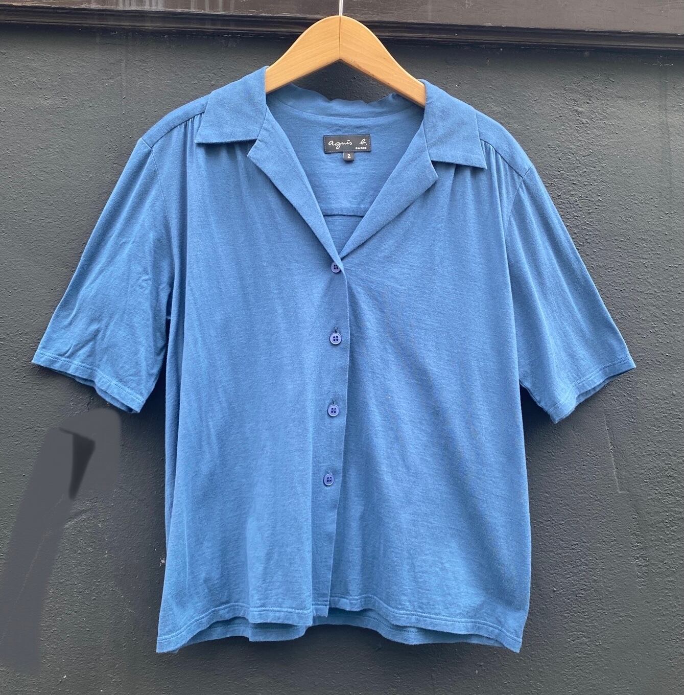 agnes b. "Short-Length×Short-Sleeve" Blue Blouse