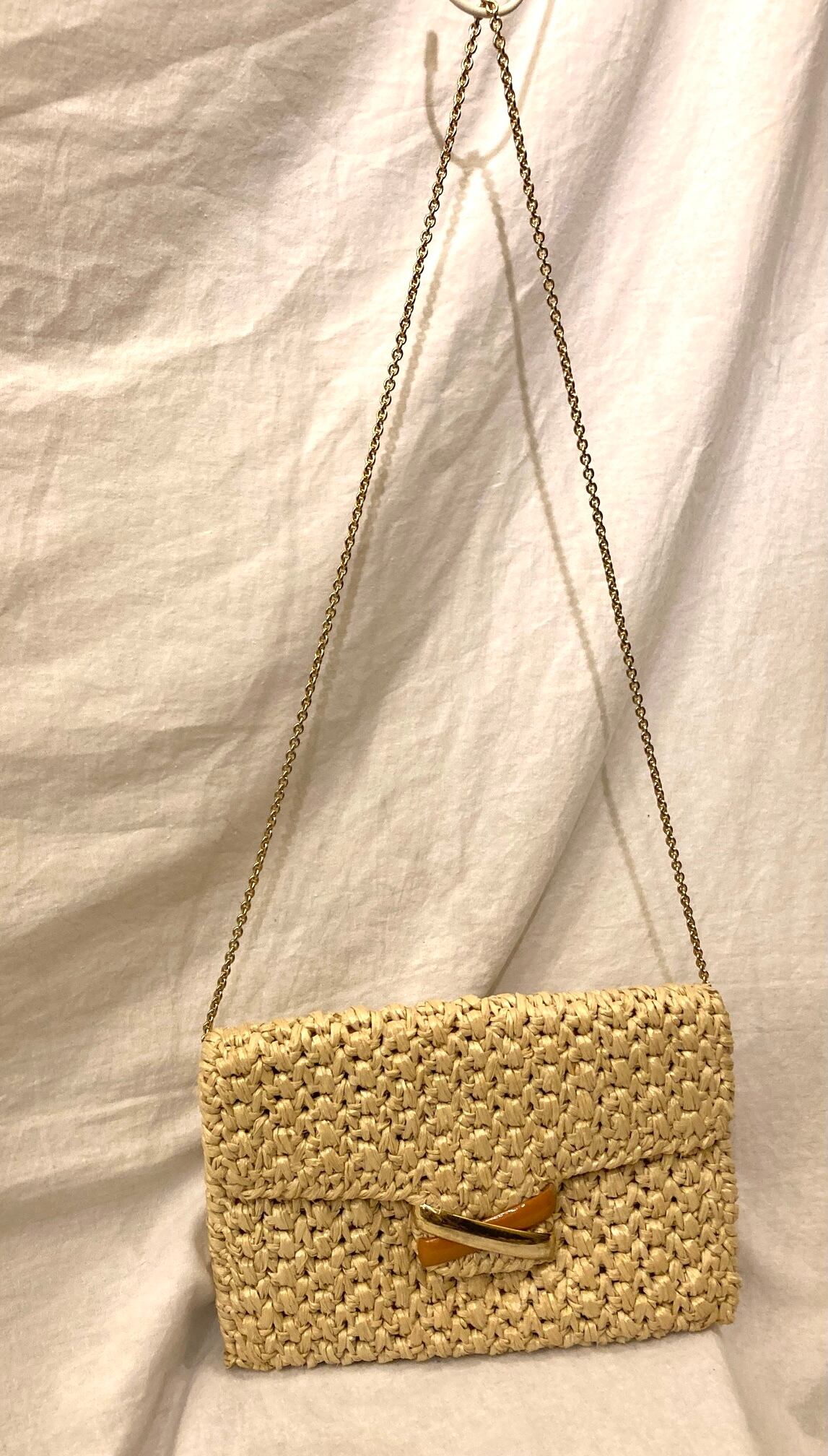 編み込まれたストロー素材とクロスモチーフがカジュアルシーンでもさらっと使いやすい80’s vintage RODOの2-Wayチェーンバッグ!