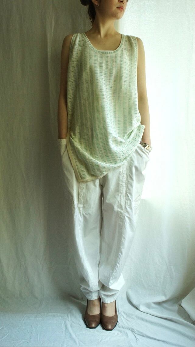 VERSACE 1980's "White×Green Cotton" No-Sleeve×Mesh Tops -Dead Stock!-