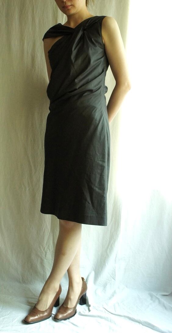 首元の変形デザインがユニークなJIL SANDERブラックドレス!