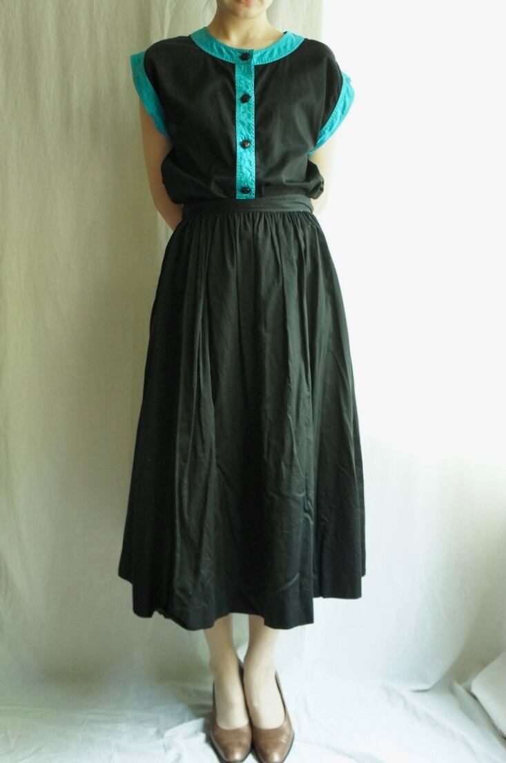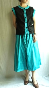 スカートは巻き方次第で、ブラックメインにも、ブルーメインでも使える2-Wayデザイン、細かいギャザーが繊細です☆