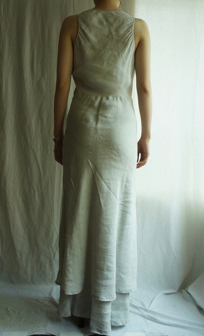 JIL SANDER + "Ice-Grey" Linen No-Sleeve Long Dress