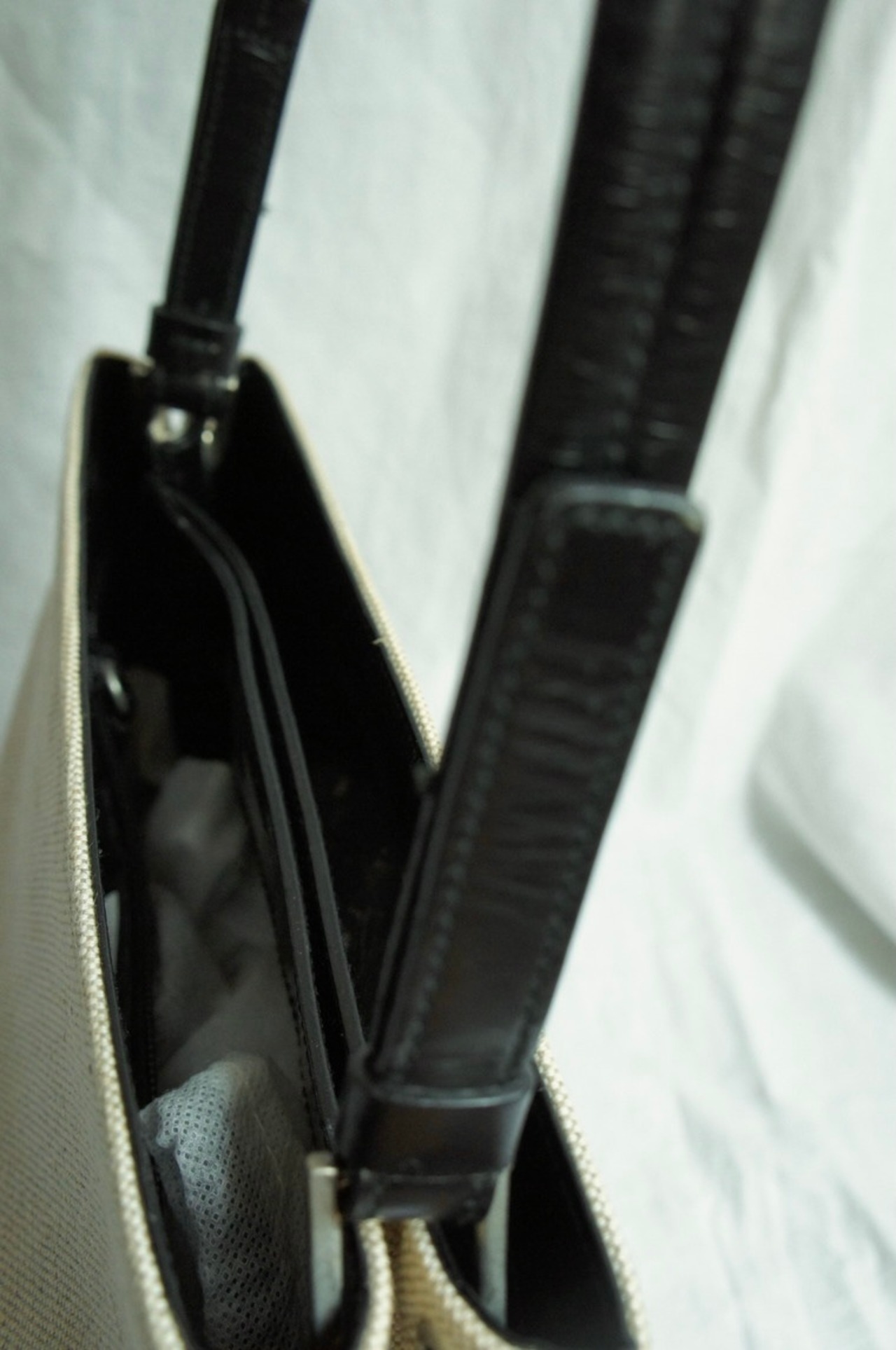 キャンバス地にブラックレザーがシックな印象のPRADAハンドバッグ!