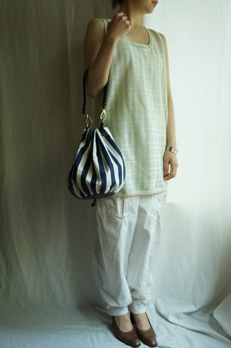 ホワイト×ブルーのマリンテイストが清涼感のあるItaly巾着バッグ!