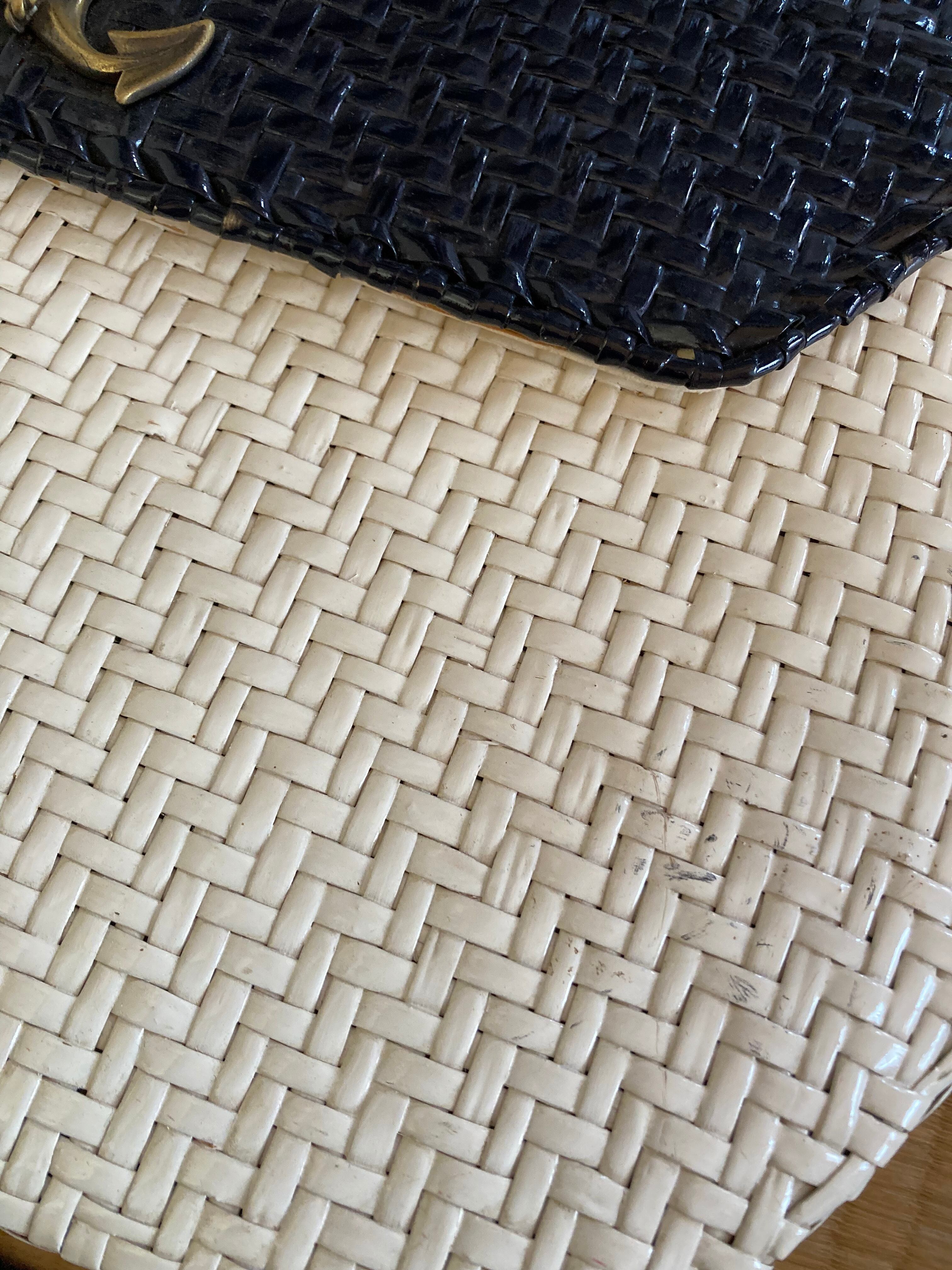 ELEGANCE "Black×White" Marine Motif Rattan Hand Bag