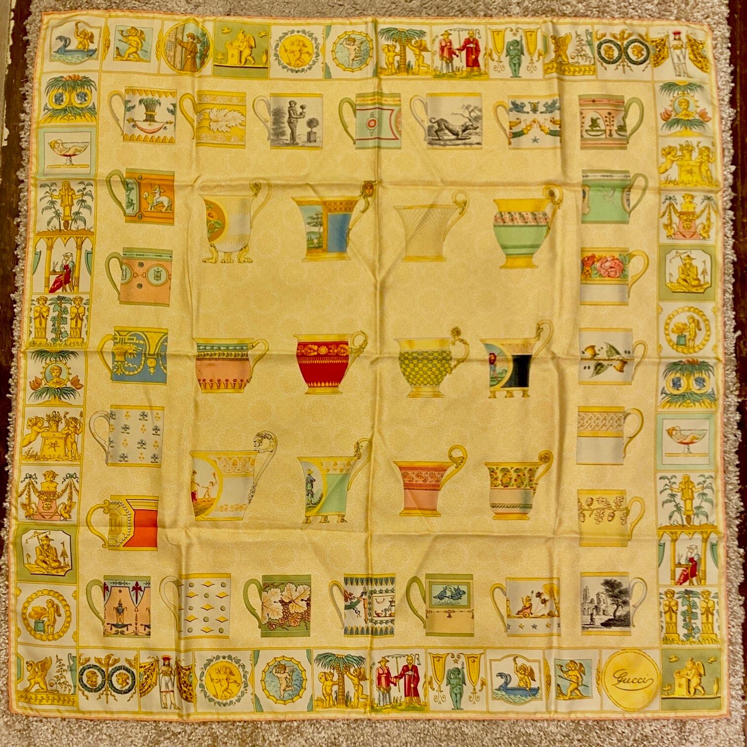 神話のような絵柄とカップデザインがユニークなGUCCIのスカーフ!