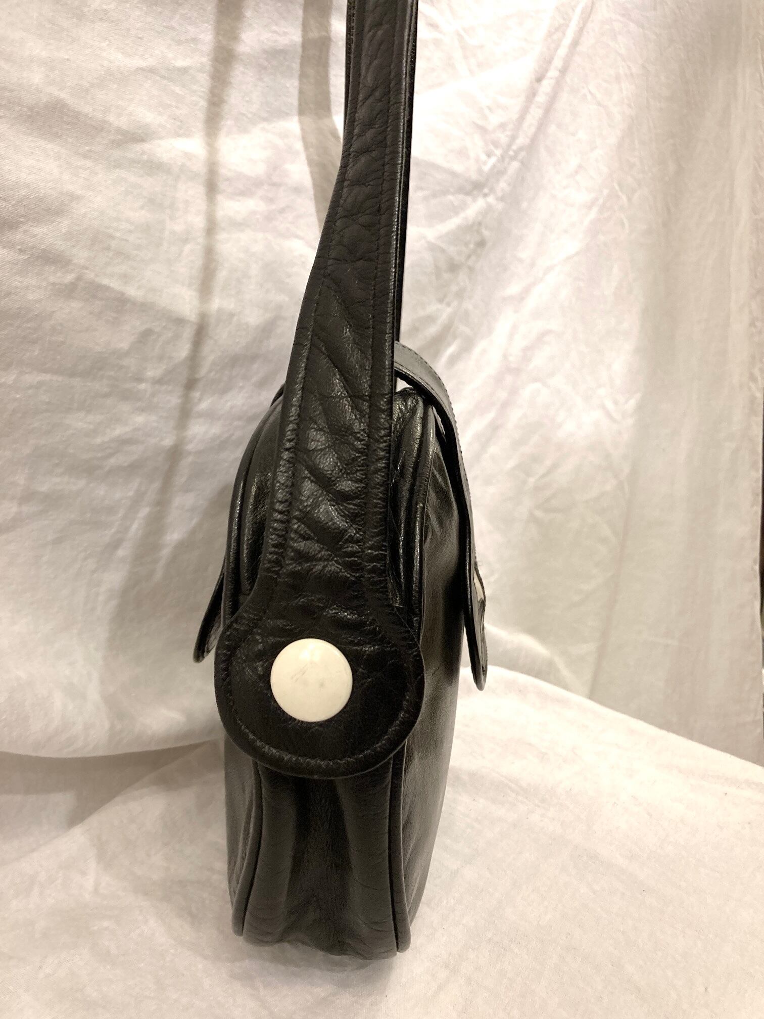 COURREGES 1970's "Logo" Round Shape Black Leather Shoulder Bag