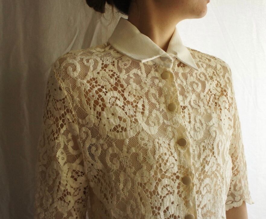 総レースが圧倒的なオーラを放つHERMESのレースブラウス, 80-90’s vintage