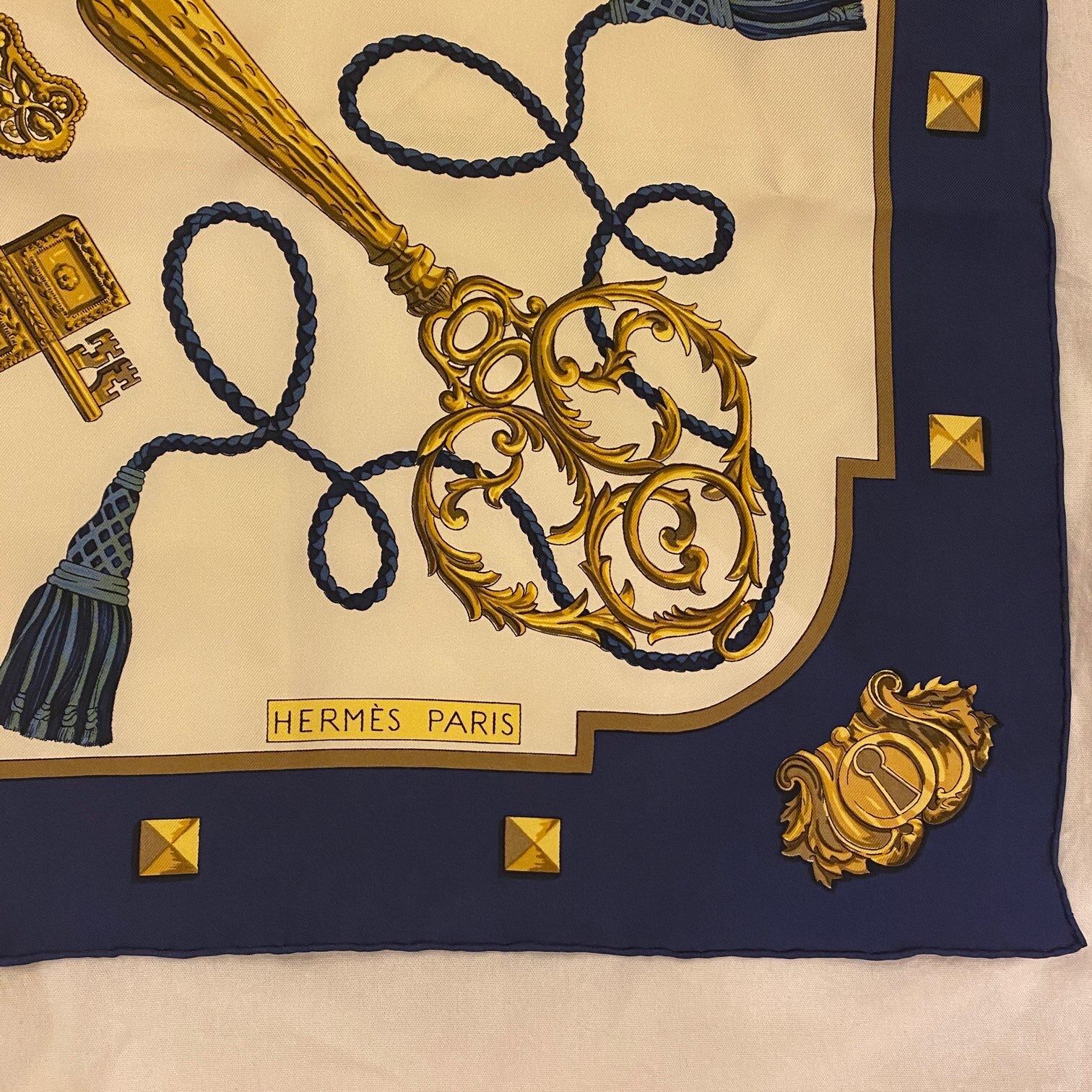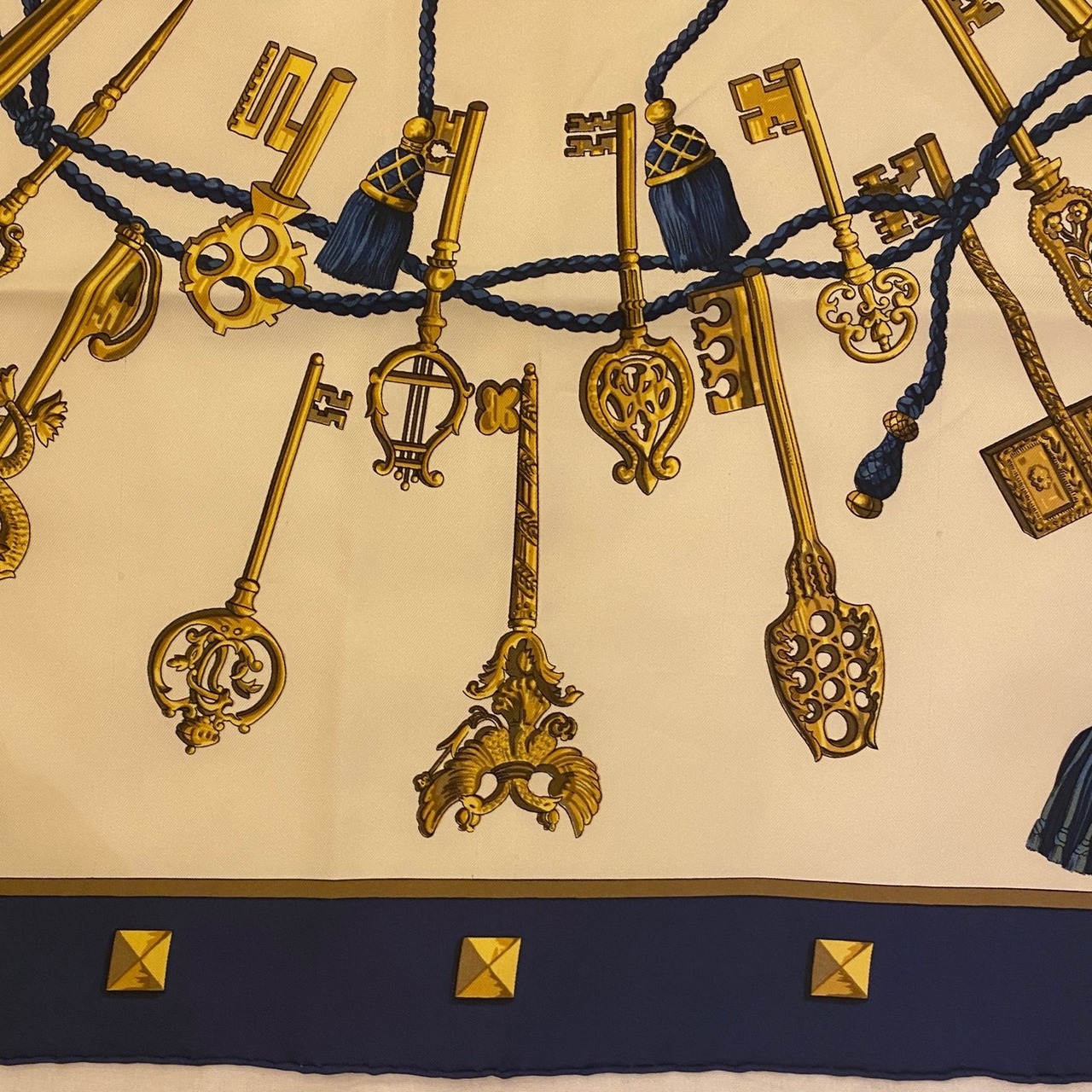 HERMES "Key Design" Navy Scarf