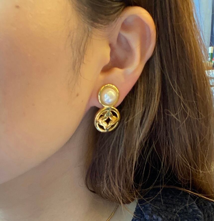ぷくっと浮き出たパールモチーフが立体感のあるGivenchyゴールドイヤリング!下の部分はくり抜きのゴールドなので程よく抜け感もあるのがポイント。