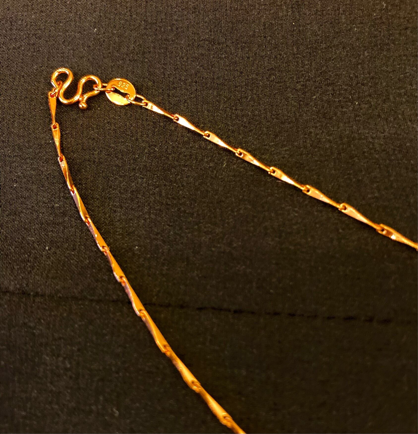 直線の美しい極細のパーツが連なっていて肌馴染みも良い一品です。