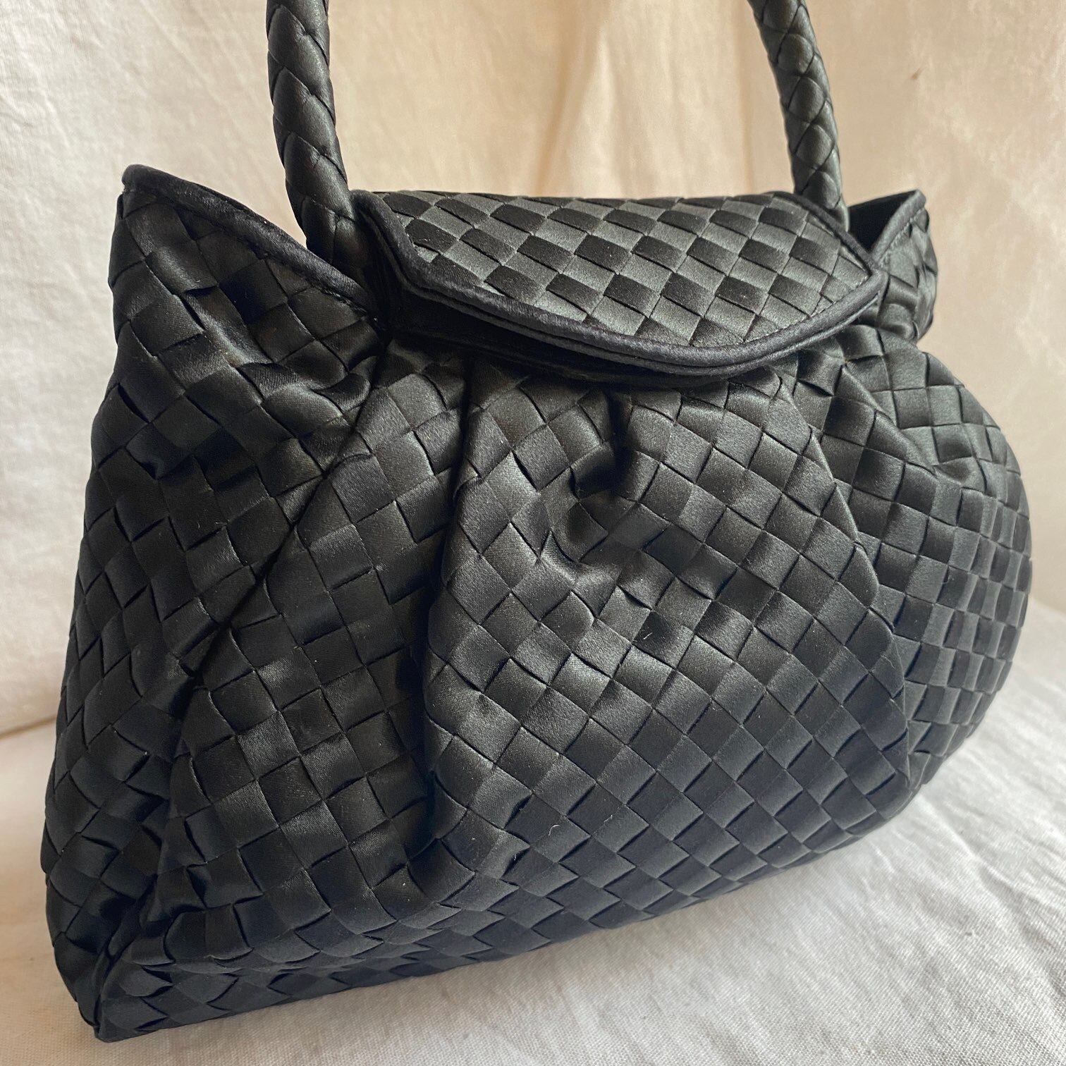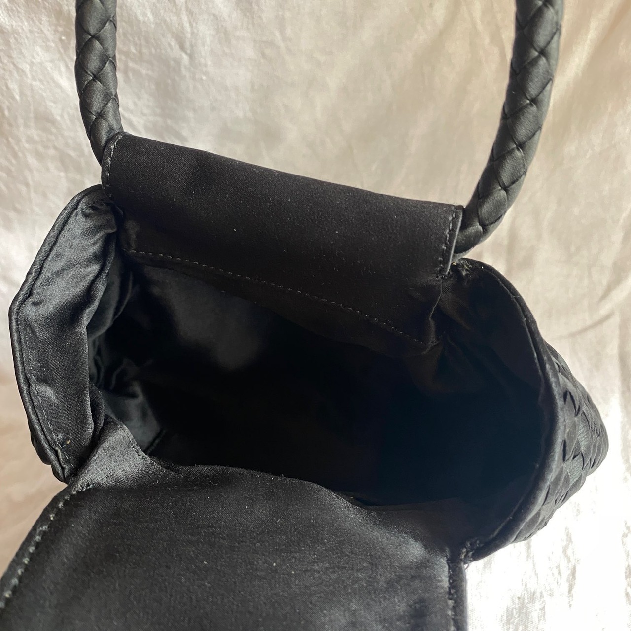 BOTTEGA 1980's "Intrecciato" Black Satin mini Hand Bag -Dead Stock!-