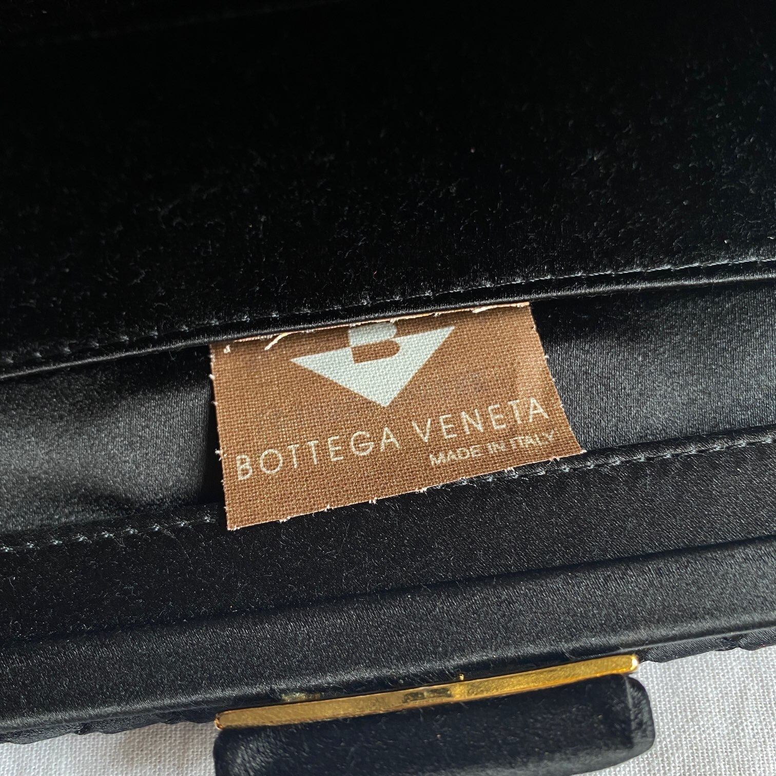 BOTTEGA 1980's "Intrecciato" Black Satin Square 2-Way Bag -Dead Stock!-