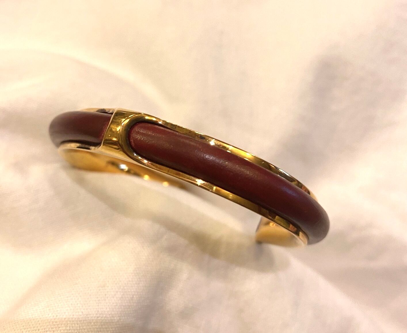 ゴールドメタルにボルドーのレザーが映えるHERMESのバングル!