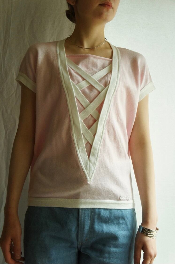 COURREGES 1960-70's "Pale Pink×White" Knitted Tops