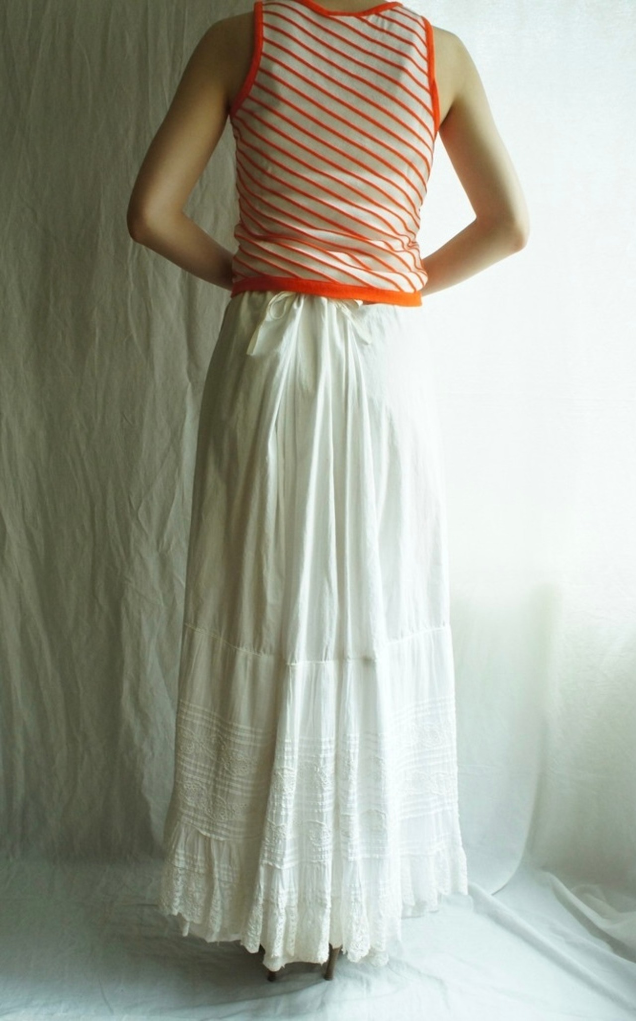 French Antique 1920~1940's "White" Cotton Lace Skirt