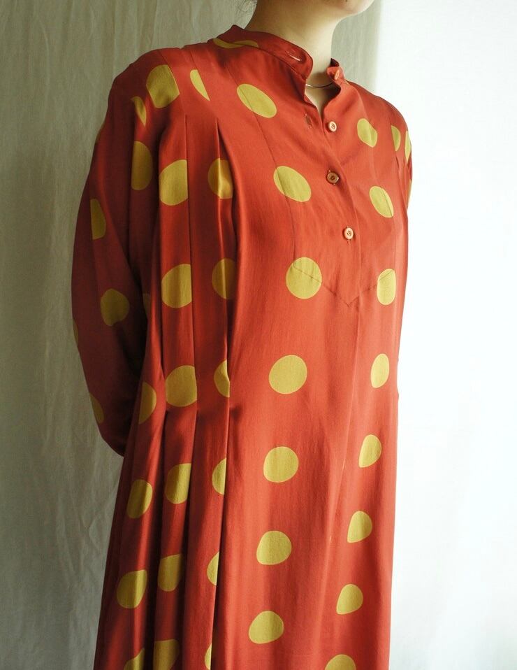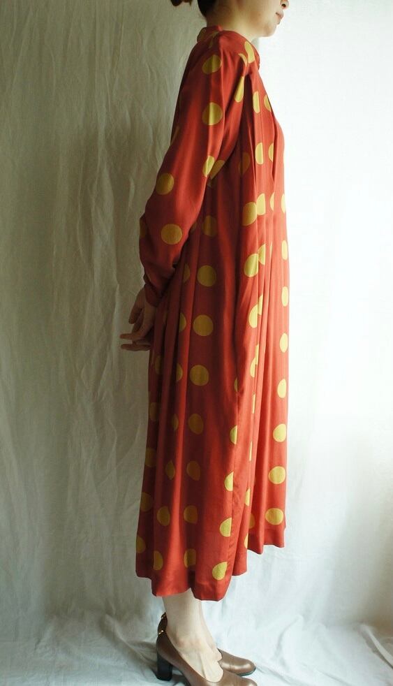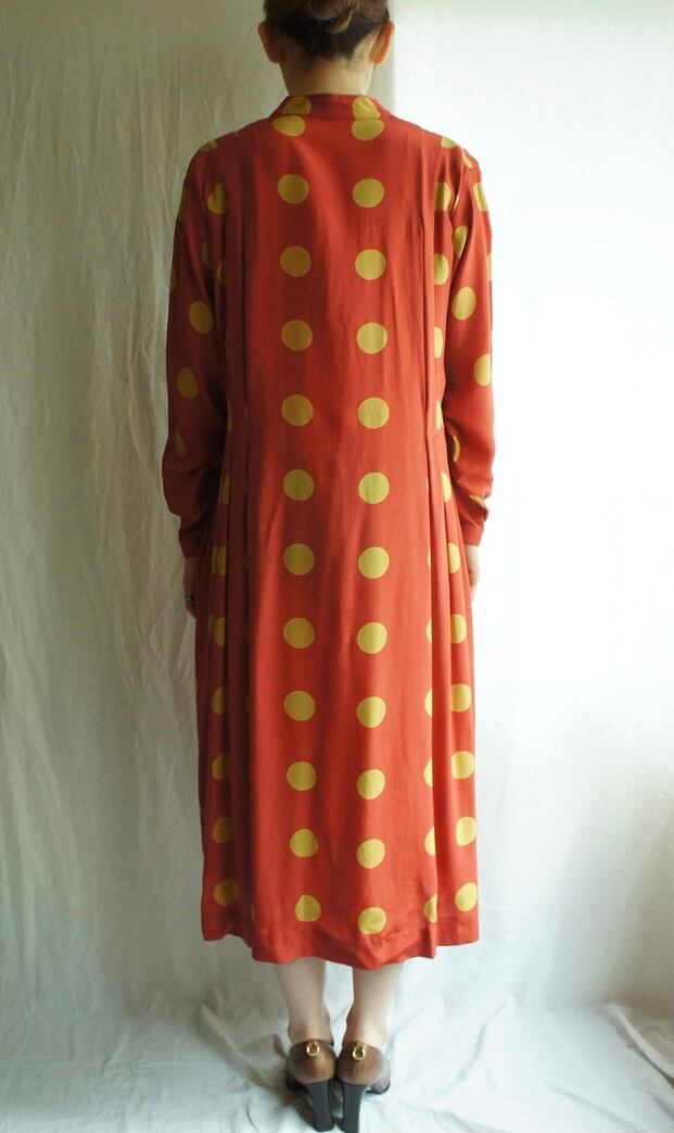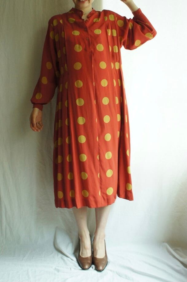 朱色時に黄土色のドットというフレンチシックなカラーリングが魅力のCHRISTIAN AUJARD 1980's Vintageワンピ!