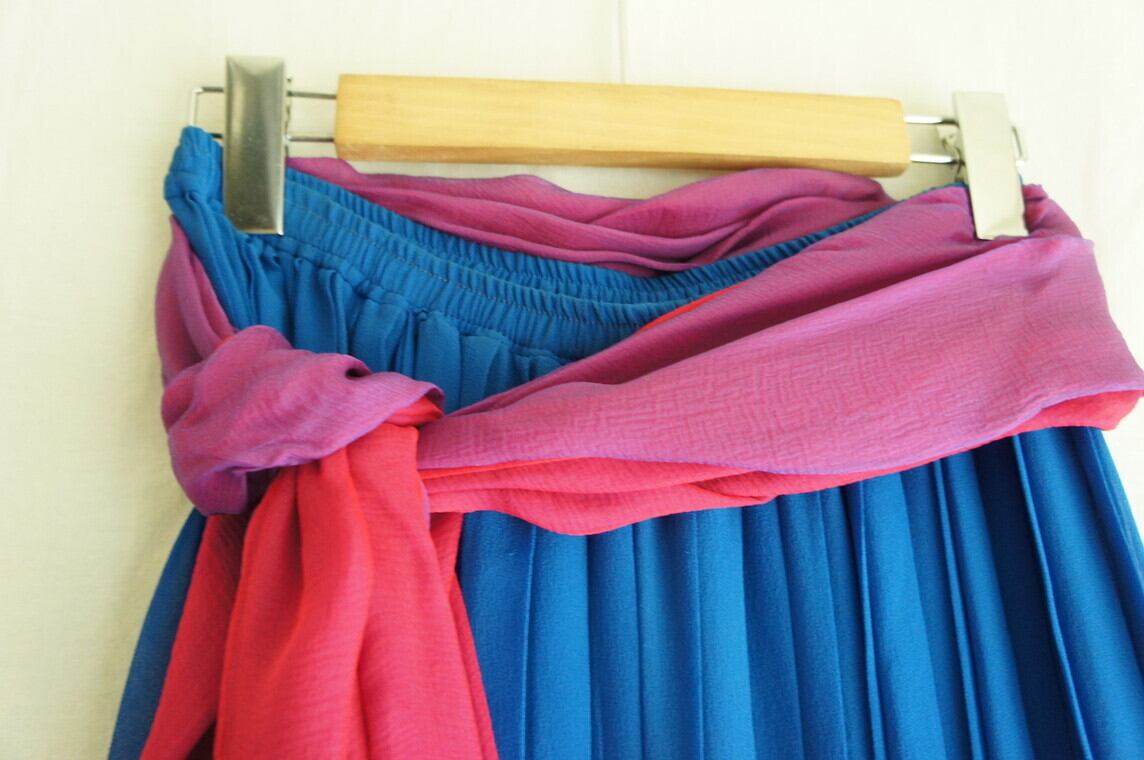 スカートも鮮やかなブルーで、バツグンの発色、しかもウエストゴムで履きやすい。